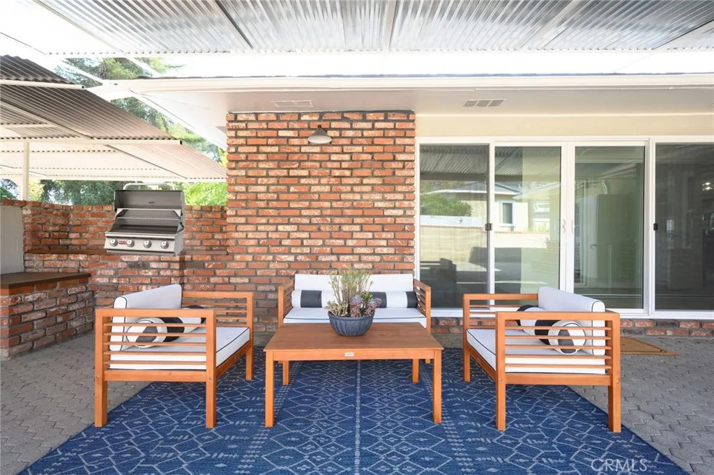 Gorgeous UPDATED 4-bedroom, 2-bathroom home in desirable Monrovia neighborhood on a quiet tree lined street with mountain views. This home features an open concept living space with a decorative fireplace and access to one of two outdoor covered patios. The kitchen has all new custom cabinetry, sleek countertops, tile backsplash, stainless steel appliances, new fixtures and a large center island with countertop seating. The spacious primary bedroom has a large closet with custom built-ins, ensuite bathroom and access to the outside patio area. Both the primary and hall bathroom have new double sink vanities, custom tile work and fixtures. Other features include luxury flooring throughout the living area and bedrooms, freshly painted exterior and interior, stylish new plumbing and lighting fixtures throughout, upgraded electrical panel, HVAC, vinyl windows, and indoor laundry. The spacious enclosed backyard is perfect for outdoor fun and entertainment with two large, covered patio areas, and yard. There is an oversized detached two car garage with ADU potential and plenty of off-street parking in the long driveway. Buyer to verify all building codes and ADU guidelines with the city. This home is just a short distance from Old Town Monrovia shops, restaurants, Saturday Farmers Market and Friday night spring and summer street fair and close to the Duarte Bike Trail. Tax rolls show different bedroom count.