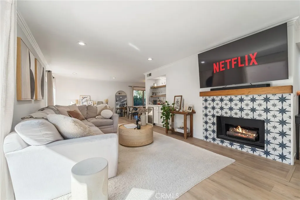 Welcome to this stunning, fully renovated corner-unit condo in the desirable Lindbrook community of Encino! This spacious 2-bedroom, 2-bath residence combines modern upgrades, open-concept living, and resort-style amenities all with no shared walls for exceptional privacy. Step through the entry into a bright, inviting living room featuring a decorative fireplace, custom wet bar, and recessed lighting. The open kitchen and dining area flow seamlessly together, showcasing all new stainless steel appliances and stylish finishes throughout. Beautiful new laminate hardwood flooring, all new windows, fresh paint, and crown molding elevate the space, while both bathrooms have been tastefully updated including a completely remodeled primary bath, gutted and redone with contemporary design and quality craftsmanship. Additional highlights include new HVAC (installed in 2022), brand new in-unit washer/dryer, and a covered parking garage with two side-by-side spaces. The HOA recently replaced all community roofs within the past year, offering added peace of mind and value. The spacious primary suite offers double-door entry, a vanity area, and three closets including a walk-in. As part of the sought-after Lindbrook complex, residents enjoy lush landscaping, a sparkling pool, spa, courtyards, and a recreation room. Ideally located between Burbank and Ventura Blvd, this rare street-facing corner unit offers the perfect blend of comfort, privacy, and style in the heart of Encino.