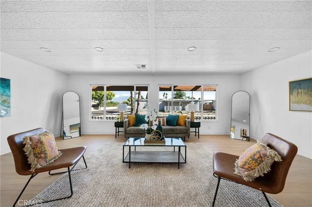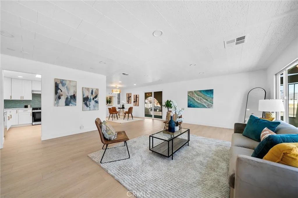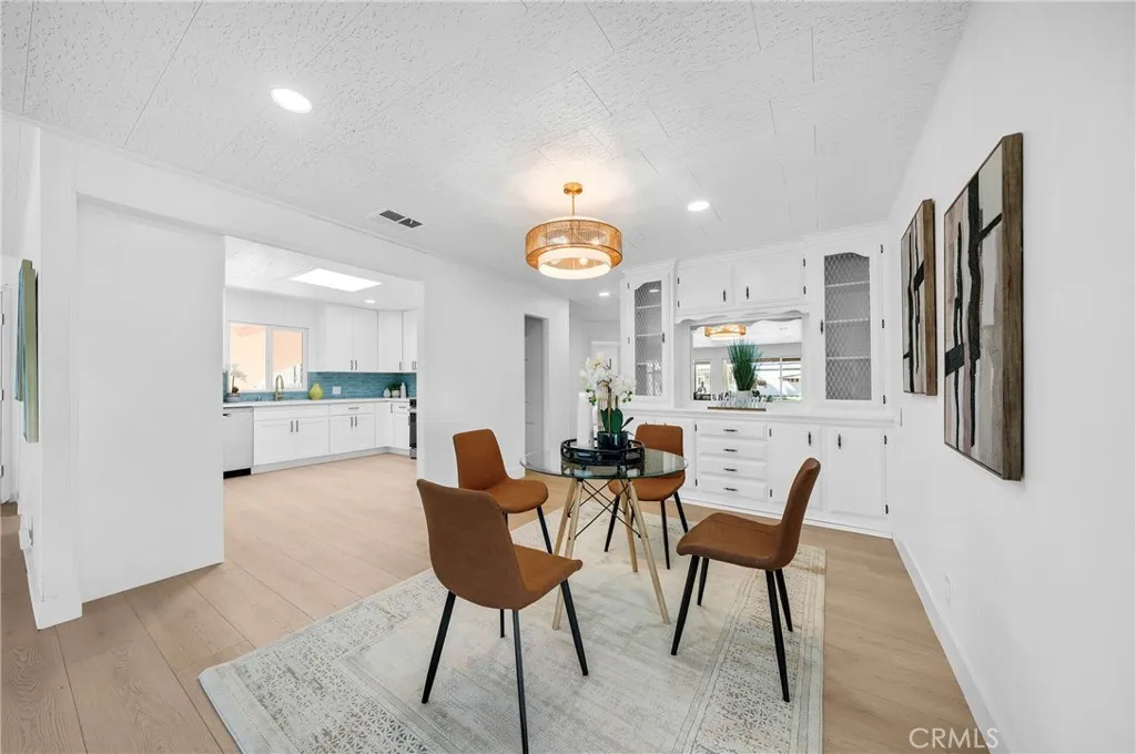 Welcome to this fully reimagined Spanish-style home in the highly desired Sierra Dawn Estates, a 55+ community that perfectly balances relaxation and active living. Behind its timeless stucco faade and arched lines, this residence has been completely renewed from top to bottom with thoughtful craftsmanship and modern comfort in mind. The home features a brand-new flat roof, energy-efficient HVAC system, dual-pane windows, new PEX plumbing, new water heater, and LED recessed lighting throughout. Inside, fresh paint, wide-plank flooring, and abundant natural light create a warm, inviting flow. The open living and dining spaces lead to a stylishly remodeled kitchen that shines under a new skylight, showcasing quartz countertops, shaker cabinetry, stainless-steel appliances, a sky-blue tile backsplash, and brushed-gold hardware. Both bathrooms have been tastefully redesigned with modern fixtures, updated vanities, and elegant tilework. The spacious bedroom includes its own skylight, filling the room with soft daylight and a serene ambiance. A dedicated laundry room and utility room add daily convenience, while a bonus 300-square-foot storage room provides incredible flexibilityideal for conversion into a garage, workshop, or creative studio. With its fresh renovations, quality systems, and timeless Spanish character, this house beautifully uplifts classic living. Just a short drive away, the stunning Diamond Valley Lake offers hiking trails, fishing and boatingbringing a natural escape to the doorstep of one of Hemets most welcoming active-adult communities.