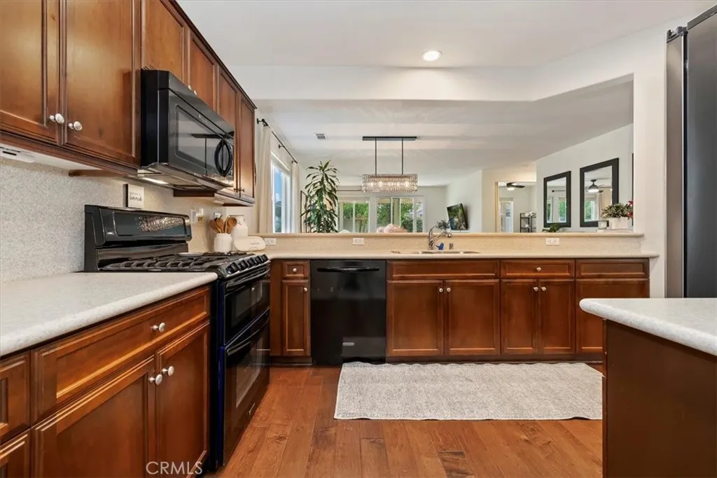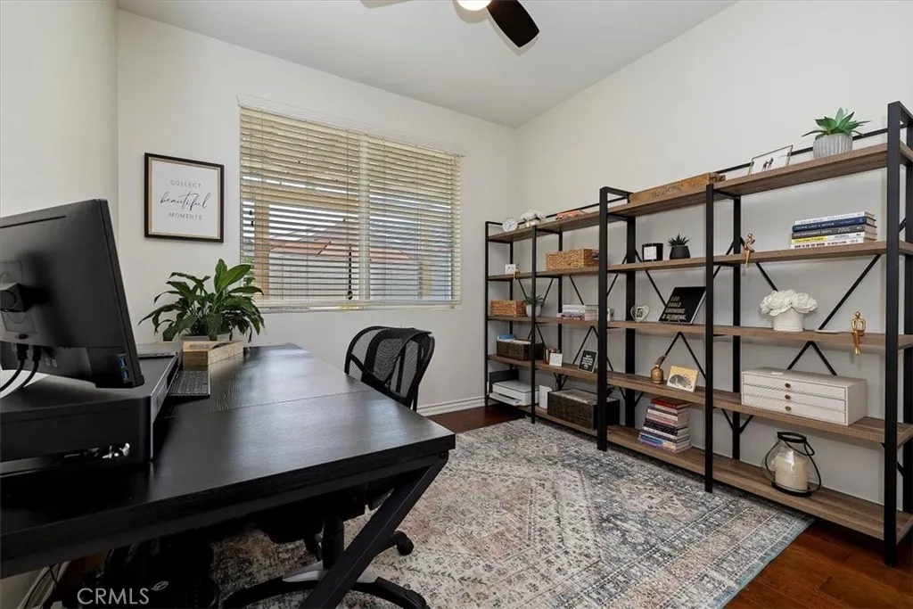 Immaculate Former Model Home | $50K+ in Upgrades | Flexible 3-BR Option | Low-Maintenance Luxury Living Welcome to this beautifully maintained La Jolla floor plan in West Hemets highly sought-after 55+ Solera Diamond Valley by Del Webb community, with over $50,000 in thoughtful upgrades throughout, you wont want to wait on this one! This former model home blends resort-style amenities with everyday ease, and is truly turn-key. Step inside to discover rich hardwood flooring, tall ceilings, and a bright, open layout that seamlessly connects the kitchen, dining, and living areas. The chefs kitchen features walnut cabinetry, Corian countertops, upgraded appliances, and a breakfast bar - perfect for quiet morning coffee or hosting friends in the evening. The split-bedroom design offers privacy and natural light throughout. The primary suite includes dual sinks, a spacious walk-in closet, a linen closet, and newer carpet. The bright den/office is spacious enough for EASY 3RD BEDROOM CONVERSION, if desired. Outside, enjoy your low-maintenance backyard retreat complete with an Alumawood patio cover, remote-controlled market lights, a built-in gas BBQ island, and beautiful artificial turf - ideal for relaxing evenings or effortless entertaining. Additional features include: Upgraded ceiling fans, upgraded, newer carpet in both bedrooms, entire interior freshly painted, heavy-duty front security screen door, built-in ceiling surround-sound system, Ring Doorbell (wired), Wyze-enabled smart garage door opener, two TV mounts, along with quality blinds, curtains, and rods. Residents of S