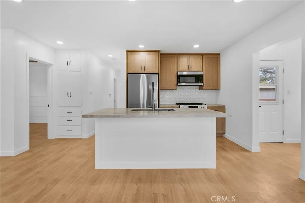 SIGNIFICANT PRICE REDUCTION OF $27,000. ATTENTION TO DETAIL! Every aspect of this property has been improved. All surfaces have been upgraded, and all the systems are new. A remodeled kitchen with brand-new SS appliances, quartz countertops, a massive island with seating for four, and new plumbing and electrical fixtures serves as the hub of this home. An open-concept dining room stands adjacent to the living room offering a wood-burning fireplace and recessed lighting. Scratch resistant laminate runs throughout the house and to three bedrooms that each have ceiling fans with remotes. The primary bathroom has a brand-new tub and tub surround, along with a new vanity highlighted with wainscotting. The secondary bathroom offers a new shower, new fixtures, and a sliding-mirrored-pocket door. The separate laundry room provides hook-ups for the washer/ dryer and leads to the fully landscaped backyard. IN THE BACKYARD YOU WILL FIND A NEW, BEAUTIFUL ADU which can be used for extended family or additional rental income. This 1/1 guest house is complete with the same finishes as the main house and has laundry hookups on the covered porch. Again, all the systems on this listing are UPGRADED. 11225 Acala offers the following: new vinyl-double-paned windows, new HVAC, new mini split in ADU, new electrical panel and wiring throughout the house, new supply and drain lines, new recessed lighting, efficient on-demand water heaters, new stucco, and new interior and exterior paint. 11225 Acala is located in culturally rich community of San Fernando and offers easy access to freeways, parks,