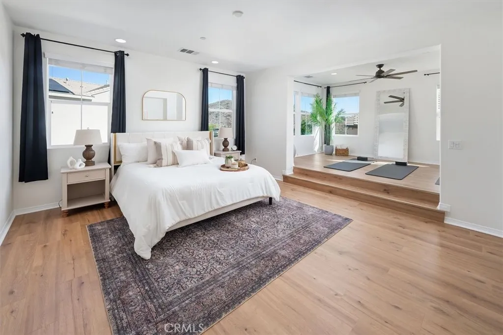 Exquisite Upgraded Valencia Home located on a Large Lot in the Gated West Hills Community! This Model like Designer Style home Boasts 5 Large Bedrooms (One Downstairs), Meticulous Master Suite, 3 Bathrooms (One Downstairs), approx. 3,400 sq. ft. on approx. 7,400 Sq. Ft. Lot. As you enter this Magnificent home you are drawn to the Stunning Upgraded Flooring & Cathedral Ceilings. Large Living Room (Could be Office), Fabulous Family Room with Romantic Fireplace & Ceiling Fan overlooking the Private Backyard, Formal Dining Area with Gorgeous Chandelier & Sliding Door to the Serene Backyard, Gourmet Chef's Kitchen with Stainless Steel Appliances including New Double Ovens, Refrigerator, Upgraded Cabinets, Granite Counters, Huge Granite Island with Built-In Storage underneath, Sitting Area & Pendant Lights, Large Walk-In Pantry. Perfect for any Celebrity Chef! As you Meander up the Spectacular Staircase with the Wood & Wrought Iron Banister you are drawn to the Huge Loft (Could be 6th Bedroom), Luxurious Master Suite with step-up separate sitting area & Stunning Mountain Views! Lavish Master Bathroom with Granite Counters, Oval Tub, Large Walk-In Shower, Dual Sinks, Vanity and Two Large Walk-In Closets. Feels like you are at a Bellagio Spa! Large Secondary Bedrooms (One with Walk-In Closet). Features include: Spectacular New Flooring, New Double Oven & Refrigerator, Recessed Lighting, Upstairs Laundry Room with Upgraded Cabinets, Sink, Large Walk-In Linen Closet, Ceiling Fans & Professionally Painted. Entertainers Backyard with Covered Patio, Custom BBQ, Enchanting Fireplace & Ma