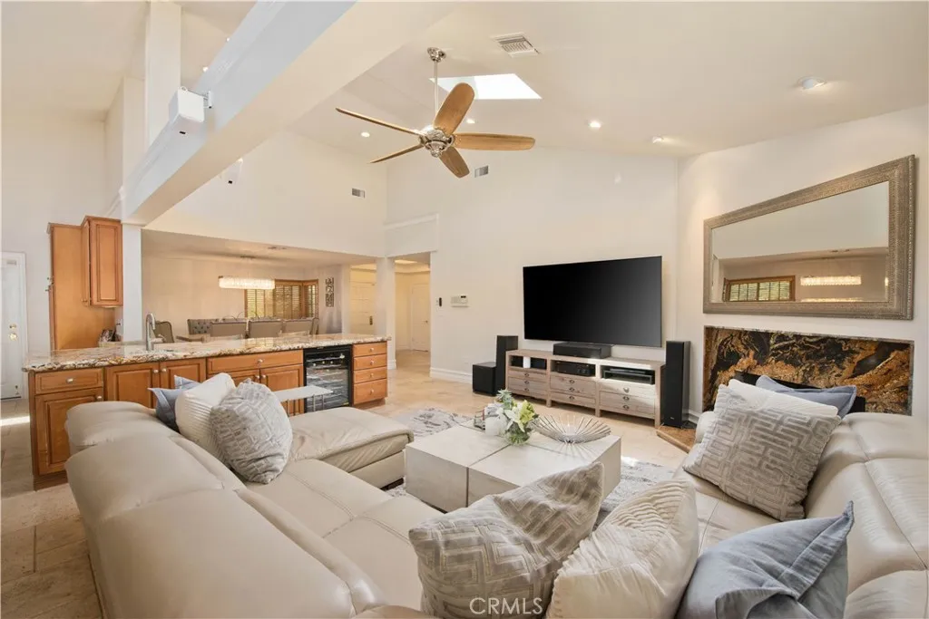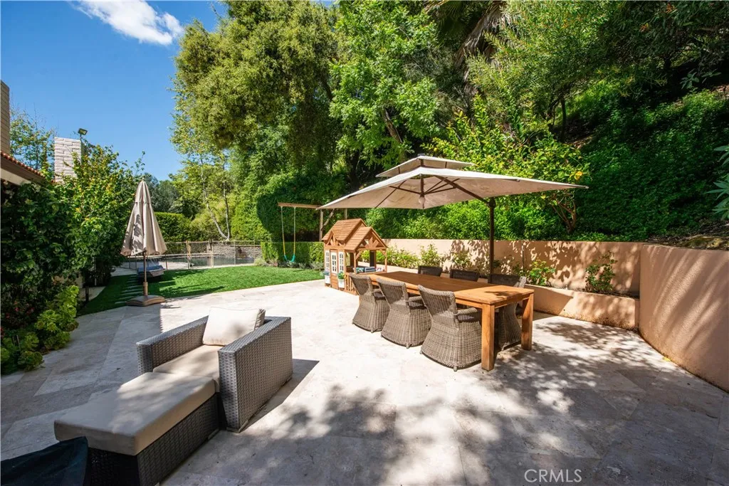 Welcome to this exquisite, gated Tuscan villa, gracefully poised in the picturesque hills of Encino. A showcase of timeless architecture and refined craftsmanship, this residence is defined by its grand open-concept living spaces, soaring vaulted ceilings, gleaming wood floors, and elegant stone finishes throughout. At the heart of the home lies a spectacular family-style chefs kitchen, complete with an expansive center island, generous breakfast bar, casual dining area, and custom cabinetry. The kitchen is fully equipped with professional-grade Viking and Sub-Zero appliances, including dual ovens, built-in refrigeration, microwave, cooktop with griddle, and even an indoor BBQ all seamlessly connecting to the fabulous family room, creating a culinary dream designed for both everyday living and grand entertaining. Additionally spread out at the central entertainer's bar with wine fridge, relax in the spacious formal living room with stunning stone fireplace or enjoy intimate dinners or extended family celebrations in the spacious formal dining room. Retreat to the opulent first-floor primary suite, a true sanctuary offering a romantic fireplace, private sitting area, direct access to the rear grounds, and a lavish spa-inspired bath. Enjoy a jetted soaking tub, dual-head shower, oversized vanity, sauna, and a custom walk-in closet fit for the most discerning tastes. Four additional bedrooms provide ample flexibility two of which can serve as secondary primary suites, a theater, or fabulous game room! Step outside and decompress in the ultra-private rear oasis, where tranqui
