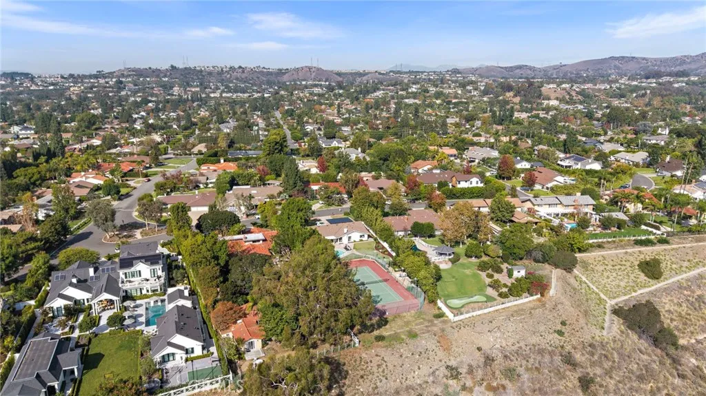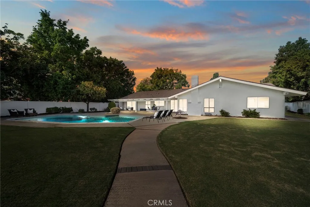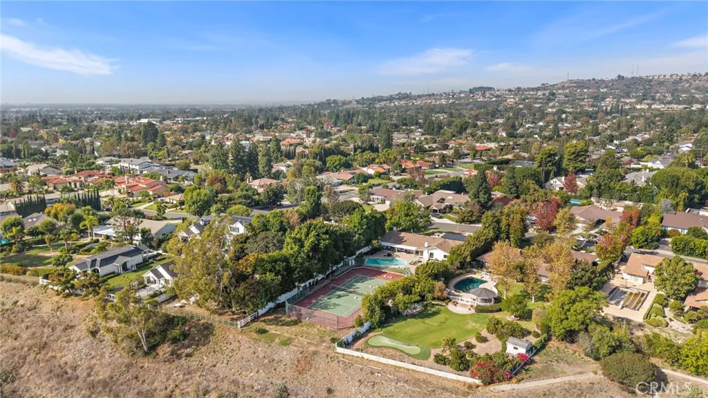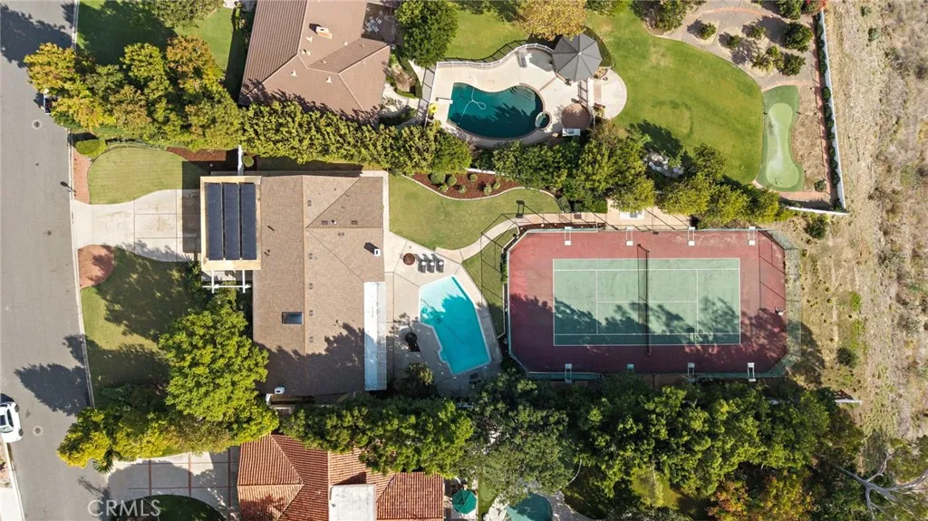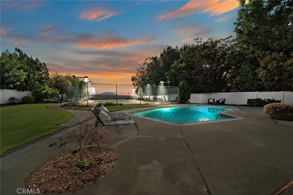 Welcome to your private sanctuary in one of Villa Parks most coveted enclaves. Nestled along prestigious Patrician Drive, known as the Riviera of Villa Park, this remarkable single-story mid-century modern estate offers the perfect blend of timeless design, California serenity, and endless possibilities for entertaining. Set on an elevated near three-quarter acre, this single story property boasts lush green lawns, vibrant landscaping, and undeniable curb appeal. Inside, nearly 3,000 square feet of living space unfolds with natural light and true single story flow. Vaulted ceilings soar above the living, family, and spacious primary room, creating a sense of airy expanse and openness. Floor to ceiling brick hearth fireplaces add warmth and appeal to both the living room and family room. Expansive views from the dining room, recently remodeled kitchen, primary suite and family rooms reflect comfort and contemporary elegance. Three additional bedrooms and 2 bathrooms can accommodate family, guests, a home office, Pilates studio; virtually anything desired. Step outside and feel the magic of true California luxury living beautifully landscaped expansive grounds, covered patio, sparkling pool glistening under the sun, regulation-size tennis court complete with lights ready for tennis matches or conversion into pickleball courts, a basketball court, or many other endless possibilities. The outdoor living space includes several open entertaining spaces designed for hosting unforgettable gatherings with friends and neighbors. From sunrise swims to twilight get-togethers beneath th