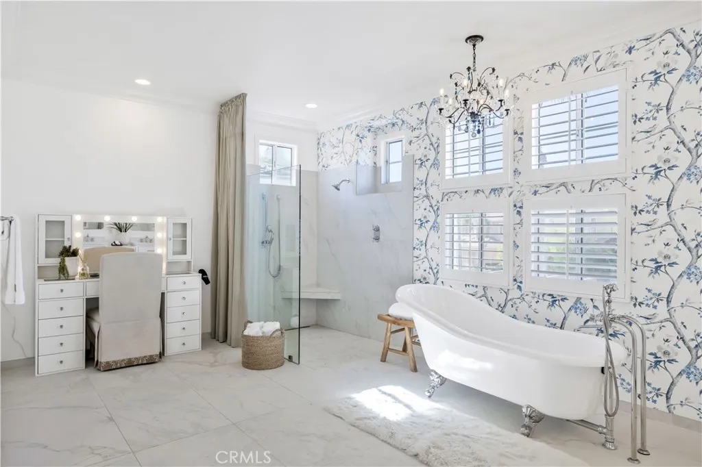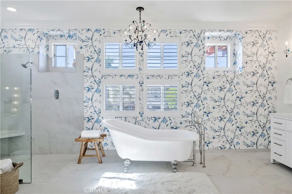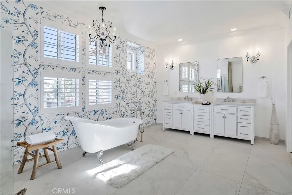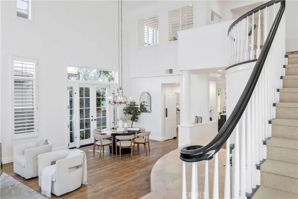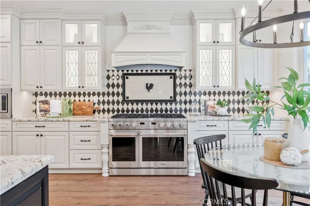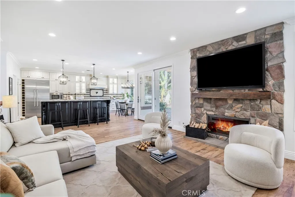 Nestled on a quiet cul-de-sac street within the prestigious GUARD-GATED COMMUNITY of Canyon Crest with NO MELLO-ROOS and LOW HOA, this stunning remodeled home perfectly blends luxury, efficiency, and comfort. This remodeled home residence showcases thoughtful design and superior craftsmanship throughout featuring a FULLY PAID SOLAR SYSTEM WITH BATTERY BACKUP, a spacious epoxy coated THREE-CAR TANDEM GARAGE with EV CHARGER outlet, MyQ wi-fi garage door openers with built in cameras and battery backup, and a large driveway that accommodates up to four cars. Step inside to a grand living and dining area with soaring ceilings, designer finishes, and abundant natural light that highlight the homes refined style. The gourmet chefs kitchen is a true showpiece, featuring an 8-burner Thor built-in range with dual ovens, a large built-in refrigerator/freezer, high-end stainless steel appliances, and a large walk-in pantry. The breakfast nook opens seamlessly to the inviting family room with a beautiful stone fireplaceperfect for everyday living and entertaining. Upstairs, the luxurious primary suite offers a private retreat with its own fireplace, a spacious sitting area, and a massive walk-in closet. The oversized spa-inspired primary bathroom features a freestanding soaking tub, a large walk-in shower, a separate makeup vanity and stunning designer finishes. Three additional bedrooms complete the upper level, including one currently used as an office with built-ins that can easily be converted into a bedroom. Step outside to a beautifully landscaped backyard featuring a gorgeous pe