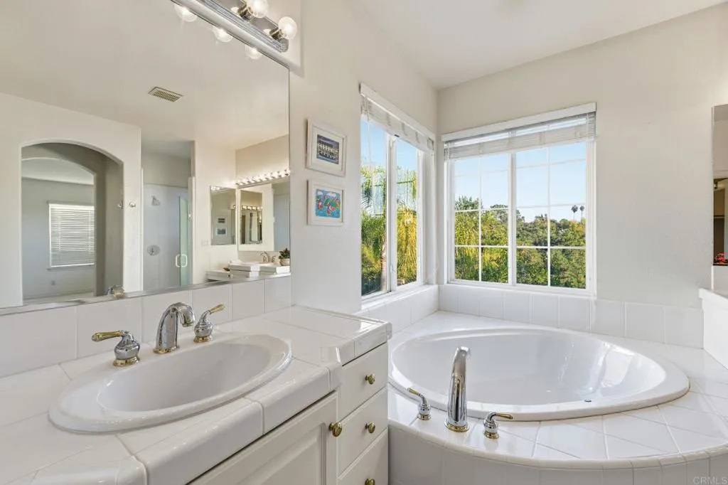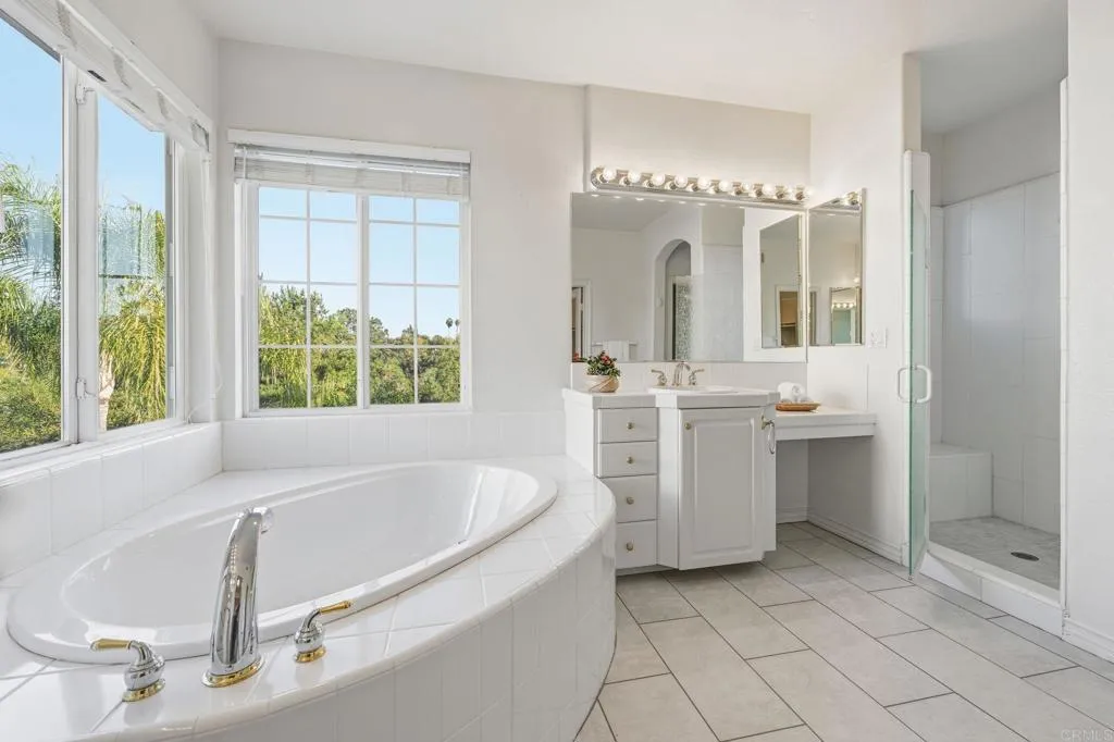 Highly sought after La Costa Valley neighborhood! This home is ideally located on a Cul-de-sac street and has a wonderful floor plan, with an abundance of natural light throughout. There are 5 bedrooms, (one bedroom ensuite on the main level), and 4 full baths, plus a powder room for guests. The spacious primary suite has a large walk-in closet and bath with dual vanities, large tub and separate shower. The adjacent loft is suitable for multiple uses. In addition to the pimary suite there are three other bedrooms upstairs, two share a Jack and Jill bath, the other is ensuite. The property is beautifully landscaped and there is a large 3-car tandum garage with tons of built-in storage. The house is a blank canvas for you to use your personal touches to make it a perfect home. As part of the La Costa Valley Association you have access to the Valley Club which offers a heated junior olympic-sized pool, spa, fitness room, tennis & pickleball courts, clubhouse and social events to enhance your lifestyle. Enjoy the best of coastal North County living with low HOA and Mello Roos, access to top-rated schools, and a short distance from the popular Forum shops, dining options, Carlsbad beaches, and major commuting routes.