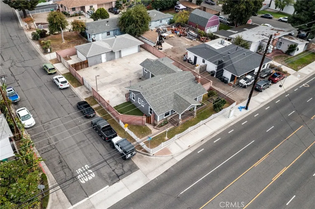 Welcome to this one-of-a-kind property that blends vintage California charm with exceptional functionality. Set on a spacious corner lot, this mixed-use home offers a rare opportunity to live comfortably while enjoying space for hobbies, storage, or even a home-based business. Step inside and youll find a cozy California bungalow that radiates warmth and character. Outside, the property truly shines featuring two detached garages that can accommodate several vehicles, perfect for car enthusiasts, hobbyists, or anyone in need of a large workshop or additional storage. The fully gated and block-walled lot provides privacy and security, with plenty of on-site parking for guests or work vehicles. Whether youre looking to make this your personal residence or an income-producing rental, the flexible M-1 zoning opens the door to creative possibilities from leasing to a contractor or small business owner, to simply enjoying the extra space yourself. Check with City for further use information. Located just north of Katella Avenue, youll love the convenient access to the 57 and 55 freeways, placing you minutes from shopping, dining, and everything Orange County has to offer.