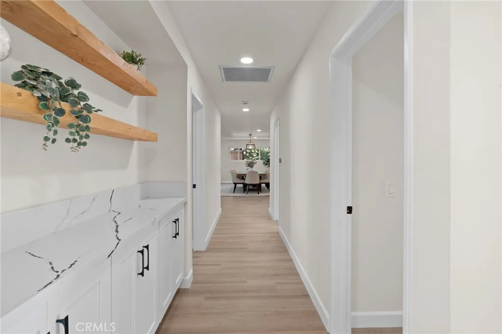 Welcome to your newly re-imagined North Claremont retreat! This stunning single-story , 4-bedroom, 3-full bath residence has been thoughtfully transformed to blend timeless character with modern sophistication. Spanning over 2,600 square feet - looks bigger! - on a generous 12,786 square feet lot, this home rests in one of Claremont's most desirable and well-established neighborhoods at the foothills of the San Gabriel Mountains. Originally built in 1969 and refreshed with elegant, contemporary updates, this property is truly a rare find. Step inside to a bright, open-concept layout where new luxury flooring and a custom-built kitchen set the tone for modern living. The kitchen showcases sleek quartz countertops, designer cabinetry, and premium finishes - creating the perfect space for cooking, entertaining, and everyday gatherings. The floor plan flows effortlessly from the inviting and open living room to a formal dining area ideal for hosting family and friends. The new kitchen, adorned with luxe accents, a hidden pantry with hutch bookcase door, and equipped with brand new appliances, seamlessly blends elegance and functionality, creating a perfect space for both everyday living and effortless entertaining. A spacious family room anchors the home with its cozy fireplace and seamless access to the beautifully landscaped backyard, complete with fruit trees and plenty of room for a swimming pool. The primary suite serves as a peaceful private retreat, featuring a spa inspired bathroom, a serene en-suite bath with views of the lush garden beyond, and a spacious walk-in clos