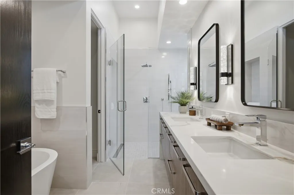 Brand-New Construction in Prime North Redondo Beach! - Tucked away in one of North Redondos most sought-after neighborhoods, this stunning rear-unit townhouse combines modern luxury with effortless coastal living. Designed to maximize natural light, the home features a bright, open layout and elegant finishes throughout. A highlight of the property is the spacious mezzanine level with its own balconyperfect as a media lounge, home office, or play area, offering flexibility for any lifestyle. The inviting living area centers around a sleek gas fireplace and is enhanced by wide-plank white oak hardwood flooring, solid-core doors, and recessed LED lighting. The gourmet kitchen is a showpiece, featuring an oversized island with quartz countertops, a stylish tiled backsplash with hidden outlets, and high-end cabinetry with soft-close metal drawers. Top-of-the-line Thermador stainless steel appliancesincluding a gas range, French door refrigerator, dishwasher, and microwave drawercomplete this impressive space. Each bathroom is thoughtfully designed with custom mirrors, contemporary lighting, and Hansgrohe fixtures. The home also includes a dedicated laundry room with a sink and side-by-side hookups, providing everyday convenience. Comfort is guaranteed with central air conditioning, forced-air heating, and a tankless water heater for energy efficiency. Additional features include Andersen windows, solar panels, and a two-car garage with a wooden door. The smart home system offers peace of mind with motion sensors, exterior cameras, a video doorbell, and remote control for lighti