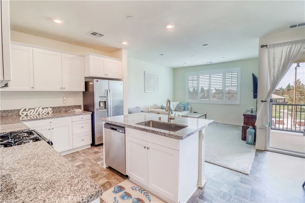 PROFESSIONAL PHOTOGRAPHY COMING SOON! Discover your dream home in the highly sought after Gabion Ranch community of North Fontana! This beautiful Lennar built condominium features two bedrooms, including a private Next Gen suite on the lower level with its own bath, large closet, sink, and mini refrigerator, perfect for guests or extended family. Upstairs offers an open concept living area with a bright great room and a stylish kitchen showcasing white cabinetry, Caledonia granite countertops, stainless steel GE appliances, and a large island. Enjoy mountain and park views from the inviting deck. The primary suite includes a walk-in closet and a bath with dual sinks and a walk-in shower. Additional highlights include LED lighting, plantation shutters throughout, home automation, keyless entry, a two-car tandem garage with tankless water heater, and a beautiful courtyard to enjoy the evening breeze. The Gabion Ranch community offers resort style amenities: three pools, spas, a splash pad, sports courts, dog park, outdoor kitchens, BBQ areas, playgrounds, and more. Conveniently located near shopping, dining, and freeway access!