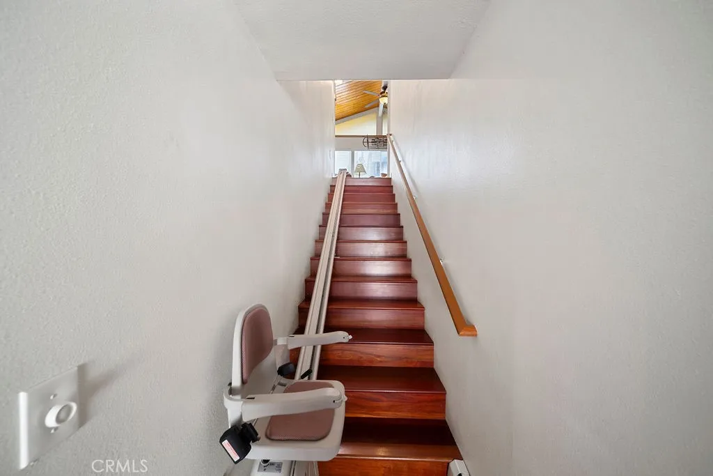 Rare to find turnkey cabin with paid off solar and modern updates in the Music Camp neighborhood in Arrowbear. In the past decade updates included metal roof, solar, appliances, renovated bathrooms and kitchen. The newer beamed ceilings add to the rustic charm with the furniture and opportunity to relax with the modern conveniences of the wet bar and enjoy the fireplace. Look for the hidden full size bed at the top of the ladder and the loveseat in the sun room for fun. Enjoy the tranquility of your back porch or the area outside the downstairs bedroom. Trouble getting up the stairs or just want a fun way to the main floor no worries, the chair lift is included. At approximately 1408 square feet this cabin provides significantly more living space for entertaining or relaxing. Ideal to live close enough to the city and affordable or for a weekend getaway conveniently located to Snow Valley Ski Resort, Big Bear, Lake Arrowhead, summers with weekly farmers market and art faire, and county activities throughout the year. Paved road and easy access. This opportunity wont last long. Call now to make this dream cabin your reality!