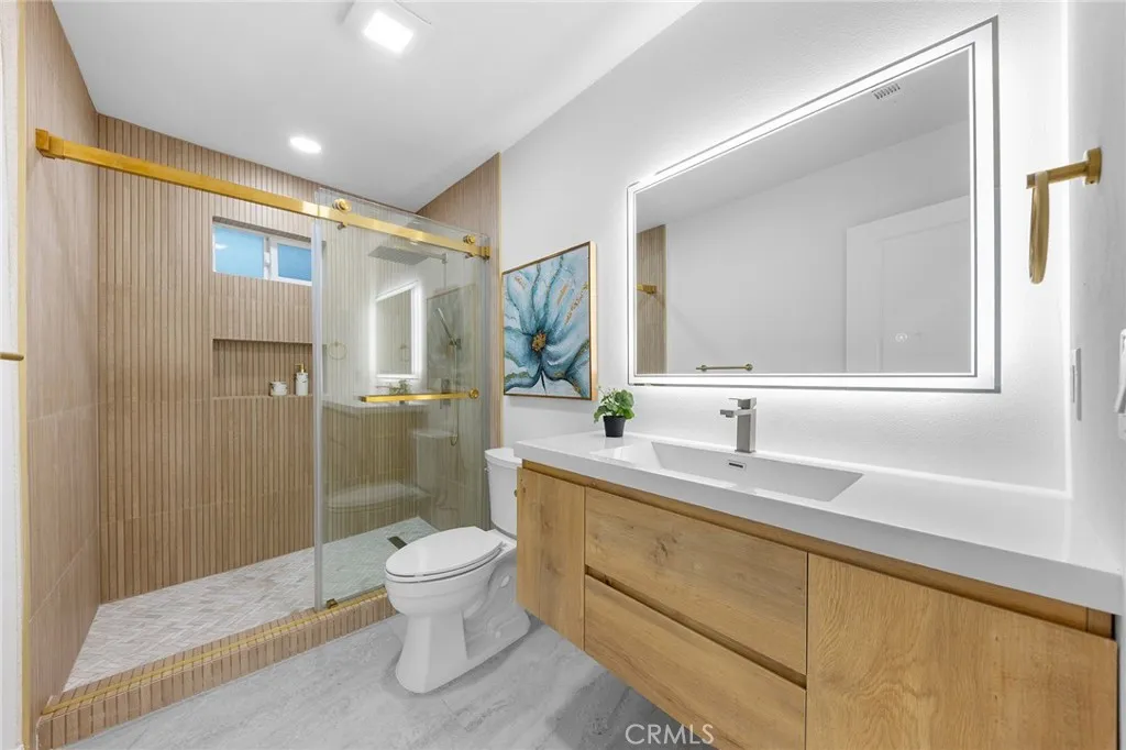 Welcome to this beautifully renovated single-story home located in a quiet and desirable Monrovia neighborhood. Thoughtfully updated with contemporary finishes and a bright, open layout, this residence offers turnkey living with style and comfort at every turn. Step inside to an inviting open-concept living space featuring new flooring, recessed lighting, and a seamless flow between the living room, dining area, and kitchen. The fully remodeled kitchen boasts sleek modern cabinetry, quartz countertops, stainless steel appliances, and a spacious peninsula perfect for casual dining and entertaining. This home offers Four well-appointed bedrooms and three stunning, fully updated bathrooms. Designer-quality bath features with a custom glass shower, gold fixtures, modern tile work, and a floating vanity. Every detail has been meticulously crafted to create a spa-like feel. The property sits on a generous lot with a beautifully maintained front yard, a long private driveway, and a detached two-car garageoffering incredible potential for additional storage or future ADU conversion (buyer to verify). The backyard and outdoor areas provide ample space for gatherings, gardening, or relaxing in the California sunshine. Located near parks, schools, shopping, dining, and easy freeway access, this home delivers both convenience and modern living in one of Monrovias most charming communities. Move-in ready and crafted with exceptional tastethis Monrovia gem is a rare opportunity you wont want to miss.