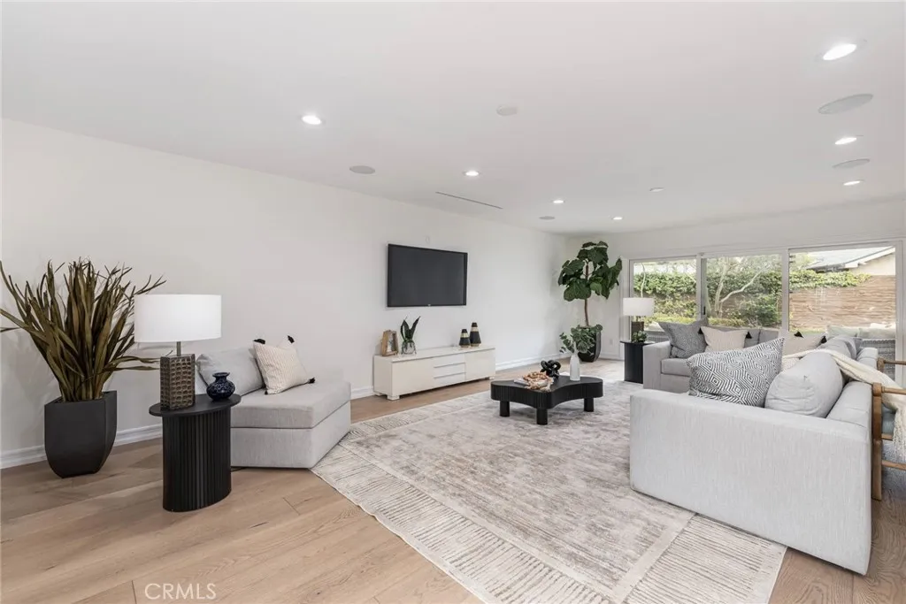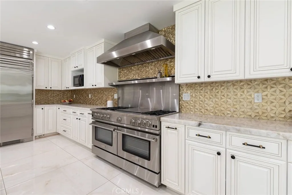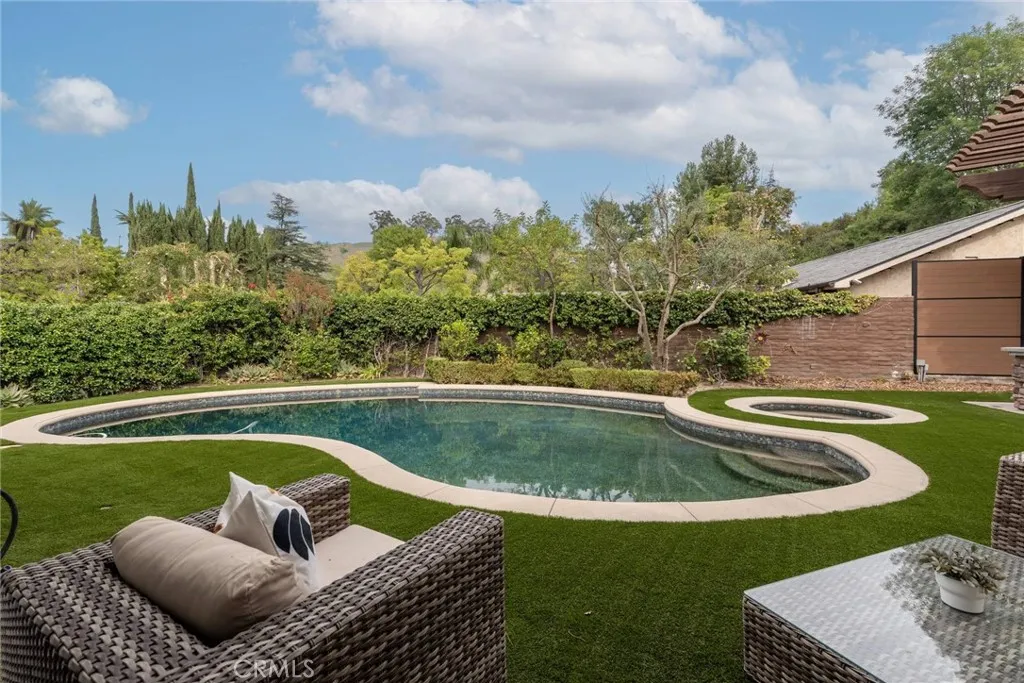 Experience the ultimate in exceptional values at this brilliantly reimagined single-level estate in Encino Hills exclusive Lake Encino enclave. Secluded on an expansive corner parcel spanning over one-third acre, this architectural gem seamlessly blends timeless sophistication with contemporary luxury, offering discerning buyers an extraordinary turnkey lifestyle. Originally crafted in 1964 and completely transformed with no detail overlooked, this 5-bedroom, 4.5-bath residence spans 4,338 square feet of thoughtfully curated living space. Wide-plank hardwood floors, expansive walls of glass, and an adaptable open floor plan bathe the interiors in natural light and invite effortless indoor-outdoor livingperfectly attuned to modern demands for versatility and privacy. Culinary enthusiasts will revel in the state-of-the-art gourmet kitchen, appointed with a dramatic quartzite waterfall island, Blue Star professional range, dual KitchenAid ovens, double Bosch dishwashers, a True Refrigerator with wine storage, integrated wine fridge, artisan tile work, and stunning marble flooring. The elegant atmosphere flows through the open-concept living and dining areas, highlighted by a sophisticated wet bar mirroring the kitchens bespoke finishesan entertainers dream. Retreat to the sumptuous primary suite, where dual walk-in closets, a flexible bonus room (ideal for nursery, gym, or home office), and a spa-caliber bath with high-design fixtures, custom cabinetry, and indulgent soaking tub create a private sanctuary. Four spacious secondary bedrooms, a custom laundry center, butlers pant