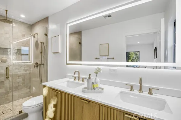 Experience unparalleled luxury in this stunning, fully remodeled and fully permitted pool home in coveted West Hills, showcasing an exceptional California-inspired outdoor living environment. Every aspect of this single-story, 4-bedroom, 3-bath residence has been meticulously redesigned with premium materials, top-tier brands, and sophisticated modern finishes. This home has been rebuilt for lasting comfort and efficiency, featuring new drywall, upgraded insulation, new roofing material, a completely new 200-amp electrical system, new plumbing including sewer lines, and a new HVAC system. The detached garage, ideal as a future ADU conversion, is already outfitted with its own electrical subpanel, nearby water and sewer access, and an EV charger outletproviding exceptional flexibility and value. Inside, the residence boasts a chefs kitchen equipped with all-new Thermador built-in appliances, a wine and beverage cooler, elegant quartz countertops, a spacious island with breakfast seating, brand-new custom cabinetry, and sleek designer backsplashes. The homes three luxurious bathrooms are appointed with Trinsic Champagne Bronze fixtures, LED lighted mirrors, new tile, and contemporary vanities, elevating the spa-like ambiance throughout. The entertainers backyard is truly exceptional, featuring a newly remodeled and fully permitted pool and spa enhanced by a Pentair smart automation system. Designed for resort-style living, the outdoor space includes a paver patio, a built-in BBQ/kitchen, and a gas lava rock firepit. California-native, drought-tolerant landscaping with a drip