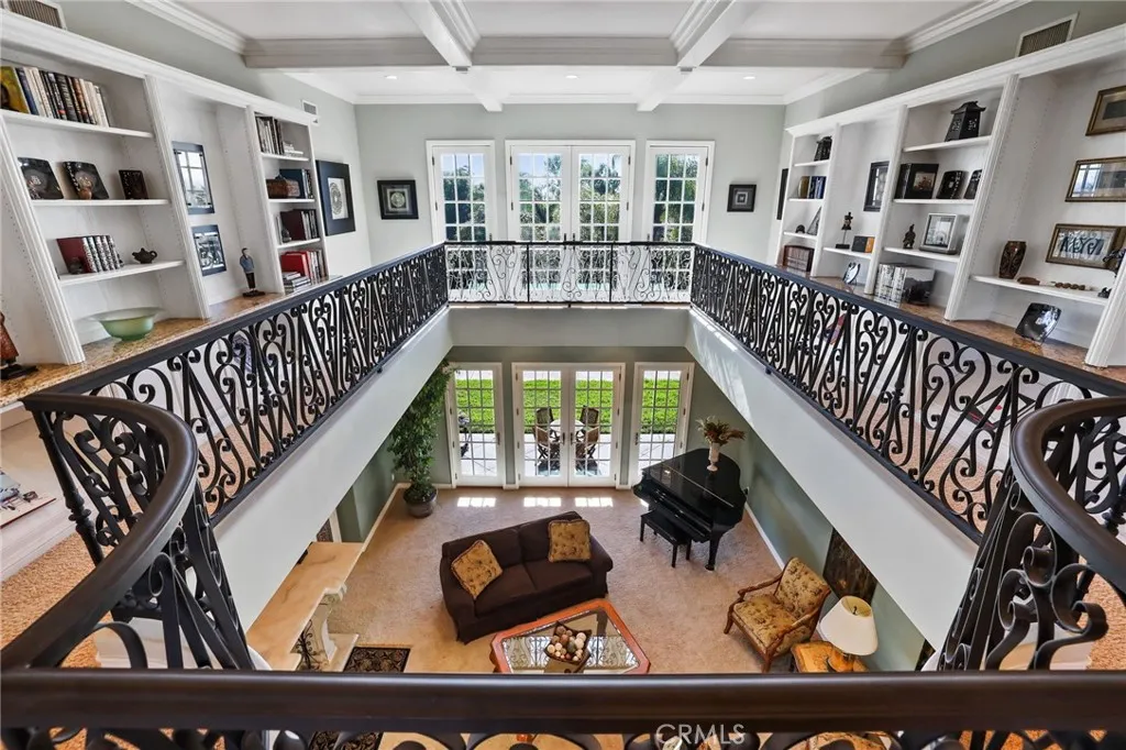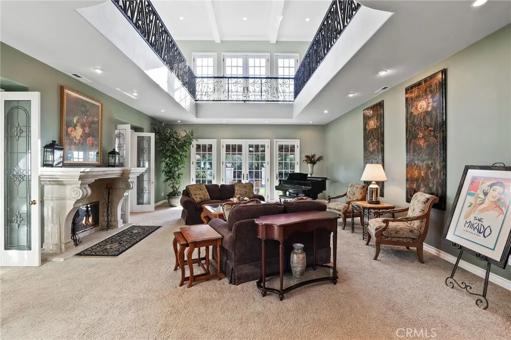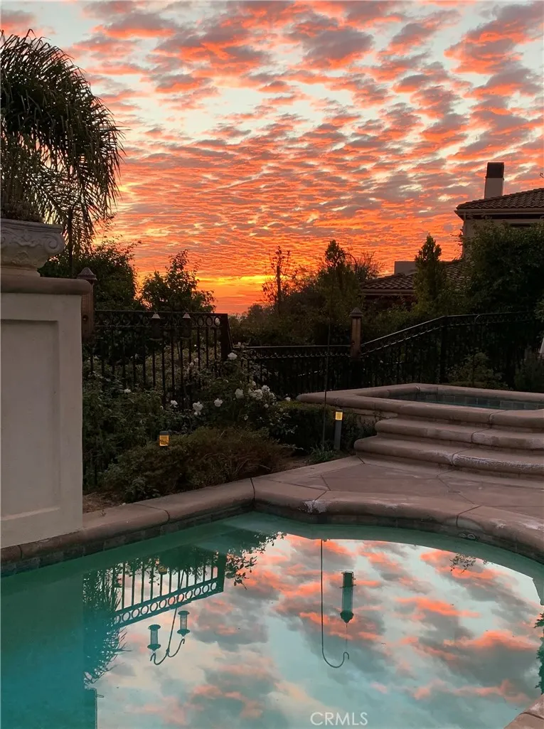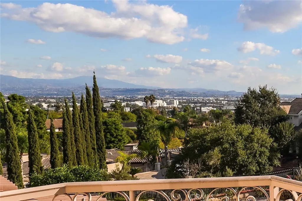 Embrace timeless elegance in this spectacular Santa Barbara Mission-style property. Located on a serene, over half-acre lot within a private gated cul-de-sac in Raymond Hills, this luxurious residence offers a perfect blend of elegance, comfort, and breathtaking views, making it an ideal sanctuary for those seeking both privacy and luxury. Main Level: Upon entering, be prepared to be awestruck by the soaring foyer, which leads you into a grand great room - setting the tone for the rest of the home. The main level features two bedroom suites: each with its own private full bathroom, Gorgeous Library complete with a dual sided fireplace, perfect for quiet reading and relaxation, Half Bathroom conveniently located for guests, Formal Dining Room ideal for hosting elegant dinner parties, Living Room featuring a warm fireplace and adjacent to the backyard creating a welcoming atmosphere for gatherings, Laundry Room offering practicality and convenience for daily chores, Gourmet Kitchen equipped with commercial appliances and a breakfast nook. Ascend to the upper level and be greeted by a breathtaking galleried mezzanine, where you can enjoy stunning views of Catalina Island on a clear day. Additional upstairs area includes: Primary Ensuite with a luxurious retreat including a fireplace and balcony overlooking the backyard and views, large shower, soaking tub, dual vanities, 2 walk-in closets, and an extra bonus room for hobbies or nursery. Also upstairs are two additional bedroom suites - each with private bathrooms, ensuring comfort for family or guests. The retreat-style backya