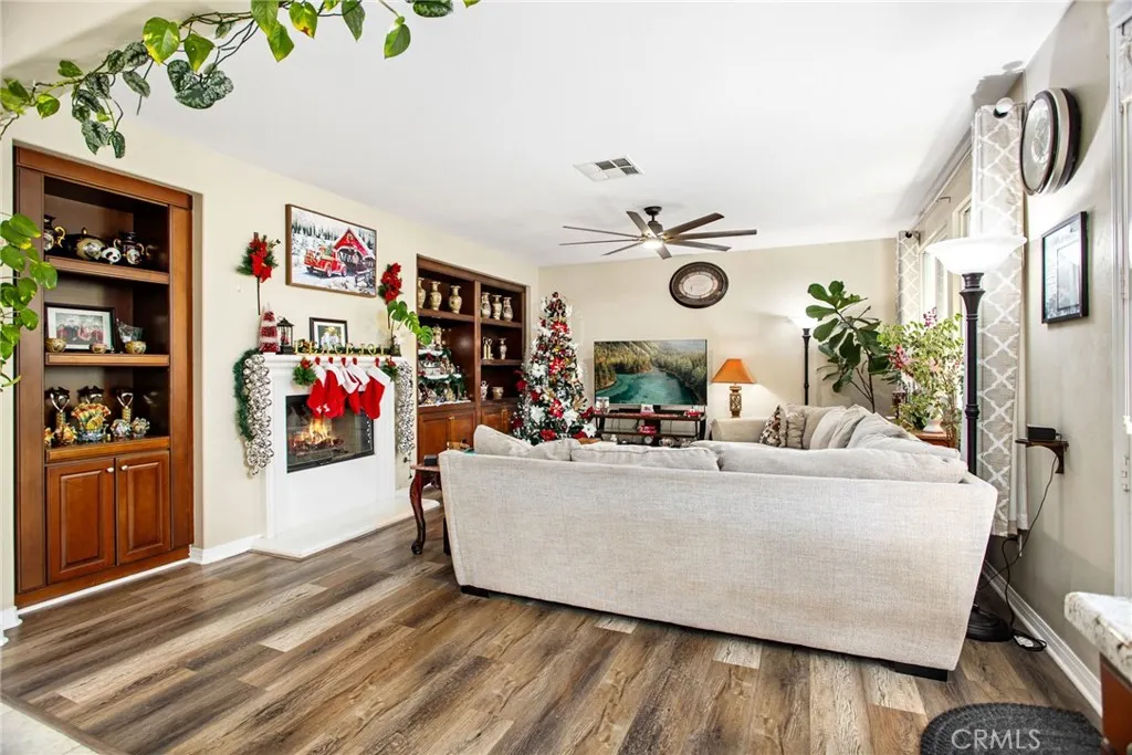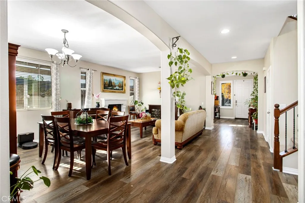 Nestled in the Copper Canyon community on the west side of Murrieta, this spacious 5-bedroom, 4-bath home offers 3,646 sq. ft. of well-planned living space with a private setting and only one neighboring property. The location is tucked against the hills and offers top rated schools. The main level includes a full bedroom and bathroom, ideal for guests, work space, or multi-generational needs. The entry opens to a large formal living and dining area with a fireplace and laminate wood flooring. The kitchen features a substantial center island, granite countertops, double ovens, a gas cooktop, tile flooring, and a walk-in pantry, and it flows into the family room with built-in cabinetry. Upstairs offers a generous loft that can serve as a media room, home office, or potential 6th bedroom. Secondary bedrooms each have access to well-appointed bathrooms with dual sinks and tub-shower combinations, including a Jack and Jill layout. The primary suite includes laminate wood floors, a large bathroom with dual sinks, a vanity, soaking tub, walk-in shower, and dual walk-in closets. The backyard features new sod, a covered patio structure, and a private setting with no direct neighbors on one side or behind. Additional highlights include a wrought iron staircase and a solar system to keep the energy bills low. A rare combination of size, functionality, and privacy in one of Murrietas most established west-side neighborhoods.
