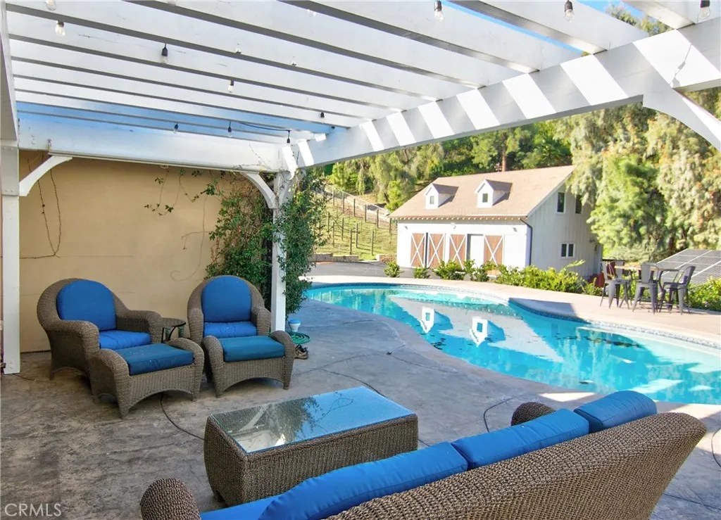 Amazing vineyard estate in the heart of West Hills. This secure, gated compound sits at the end of a quiet cul-de-sac on a sprawling 28,000 sq ft lot and features a beautifully remodeled single-story 4-bedroom home, a large workshop barn with two upgraded studio apts. surrounded by a picturesque hillside vineyard with over 300 vines. Dream property for car collectors, contractors, home business and wine connoisseurs. A spa resort in the city! The main residence offers approx. 2,000 sq ft of refined living space. Custom gourmet kitchen is perfect for wine-countrystyle entertaining, while the vaulted-ceiling living room features a built-in sound system, fireplace, and miles of newer hardwood floors. The spa-inspired primary suite includes a walk-in closet, soaking tub, and steam shower for ultimate relaxation. Step outside to a stunning portico patio overlooking a resort-level pool and the estates Napa-style vineyard views. The impressive wine barn includes two oversized workshop bays ideal for contractors, car collectors, tradespeople, or anyone needing versatile hobby or equipment space. Above the barn are two beautifully updated studio apts. with 2.5 baths, two kitchenettes, private laundry, and chic designer finishesperfect for extended family, guests, or income-producing rentals. The property is further enhanced by a substantial solar panel farm (owned), comprehensive security and entertainment systems, EV charging station and multiple spaces designed for work, creativity, and self-sufficiency. A turnkey luxury compound offering privacy, versatility, and an unmatched li