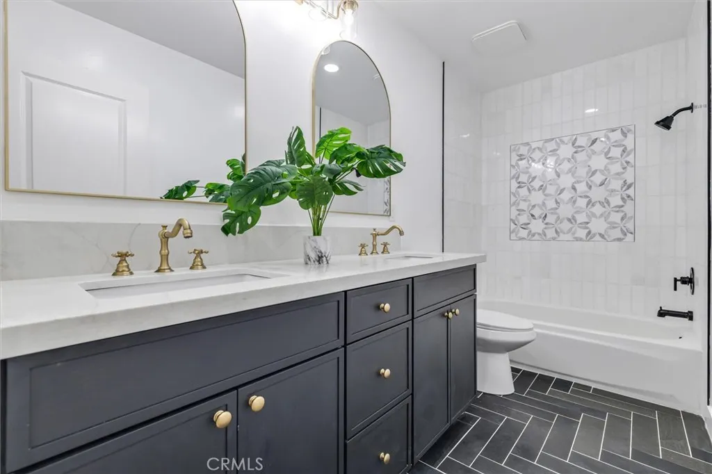 Welcome to this reimagined contemporary modern masterpiece. With an effective age of 2025, this 5-bedroom, 4-bath masterpiece, corner property, is truly move-in ready and waiting for its new owner to fall in love. Step through the elegant, grand, formal entryway and into a world of bright, open living spaces, cathedral ceilings, and brand-new premium wood flooring throughout. The inviting living room features a gorgeous porcelain fireplace and flows seamlessly into the entertainers backyard with beautiful gazebo and shedperfect for gatherings, celebrations, and everyday relaxation. The heart of the home is the chef-inspired kitchen, beautifully upgraded with top-of-the-line appliances, custom cabinetry, custom quartz countertops, and a spacious breakfast bar ideal for casual dining or hosting friends. This home offers two expansive primary bedrooms, each with oversized walk-in closetsyour own private retreats. The additional bedrooms are generously sized with new windows, new flooring, and ample closet space. Every bathroom has been luxuriously adorned with marble, designer fixtures, custom tile work, and stylish finishes. Four bedrooms feature custom walk-in closets. Additional upgrades include: Tesla Solar, fresh interior and exterior paint, curated lighting throughout, custom upgrades and touches in the restrooms including Thassos and mosaic marble and oversized showers and baths, 2-car epoxy garage with extra storage space, and over $300,000 in premium improvements. All of this is nestled in one of Anaheims most sought-after neighborhoodsclose to world-class attractions