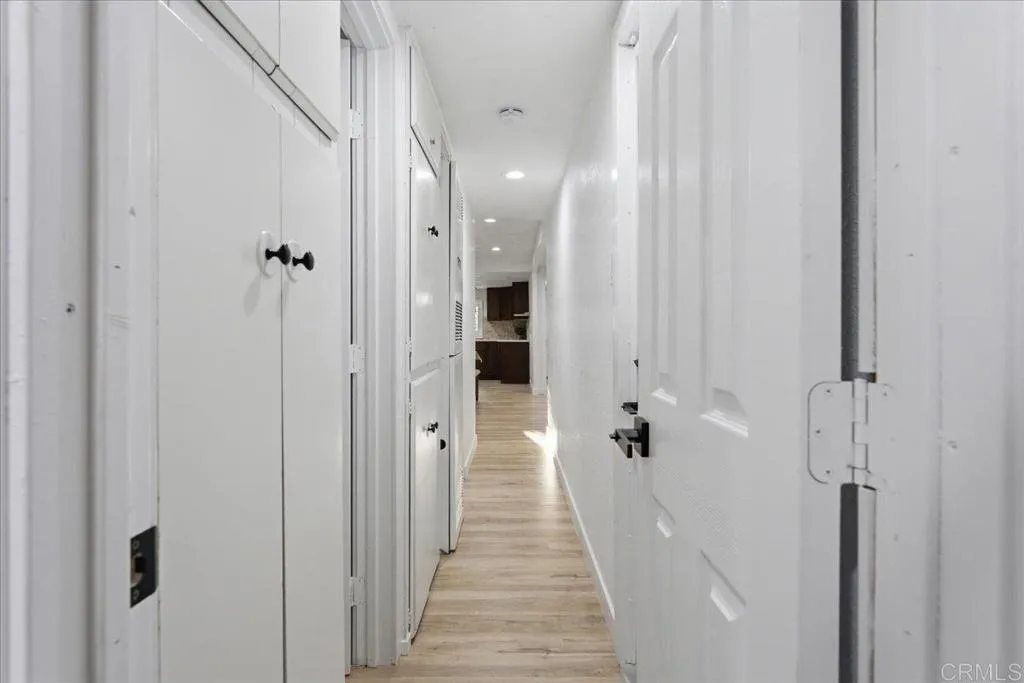 Step into this beautifully remodeled, move-in-ready gem, perfectly situated on a desirable corner lot in a peaceful senior community. This cozy, impeccably maintained home features a stylishly upgraded kitchen with natural stone accents, chic mini-pendant lighting, and a sleek stainless under-cabinet range hood. Convenience is built right in with an in-unit washer and dryer plus a handy utility sink. Elegant white interior shutters, fresh laminate flooring, and plush new carpet in the primary bedroom create a bright, inviting atmosphere throughout. Outside, enjoy a spacious two-car carport and a charming covered patio area complete with a guava tree, lemon tree, and storage shed. The community offers resort-style amenities including a sparkling pool, clubhouse, library, and even a chapel. This stunning home has it alland it wont last long!