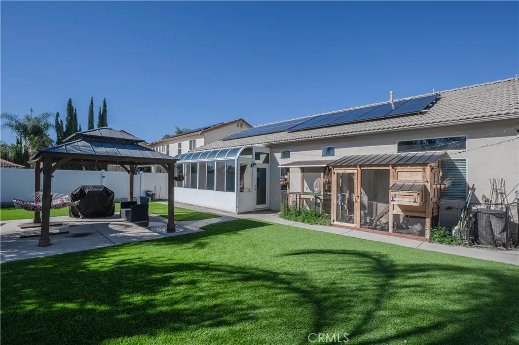 This stunning 3 bed / 3 bath home has been fully remodeled and comes with a rare bonus: a front casita that can be used as a rental unit, office, studio, gym, or private guest space. Fresh upgrades flow throughout the home, offering move-in-ready comfort and modern style. The exterior has been completely revitalized with new vinyl fencing, new concrete, updated drainage, and a beautifully redesigned backyard perfect for gatherings, pets, or relaxation. Enjoy low utility costs with owned solar panels. A spacious two-car garage, oversized driveway, and large yard provide abundant parking and outdoor possibilities from hosting events to adding future features. Whether you're looking for income potential, extra living space, or a flexible multi-use layout, this property truly has it all. Recently Remodeled complete backyard renovation, New Turf , New Drainage under turf and throughout backyard. New Stones and cement retaining walls and brand new vinyl fencing to separate not only the yard but the front casitas yard to the main houses yard. New Solar Panels. Come Check This Beauty out!