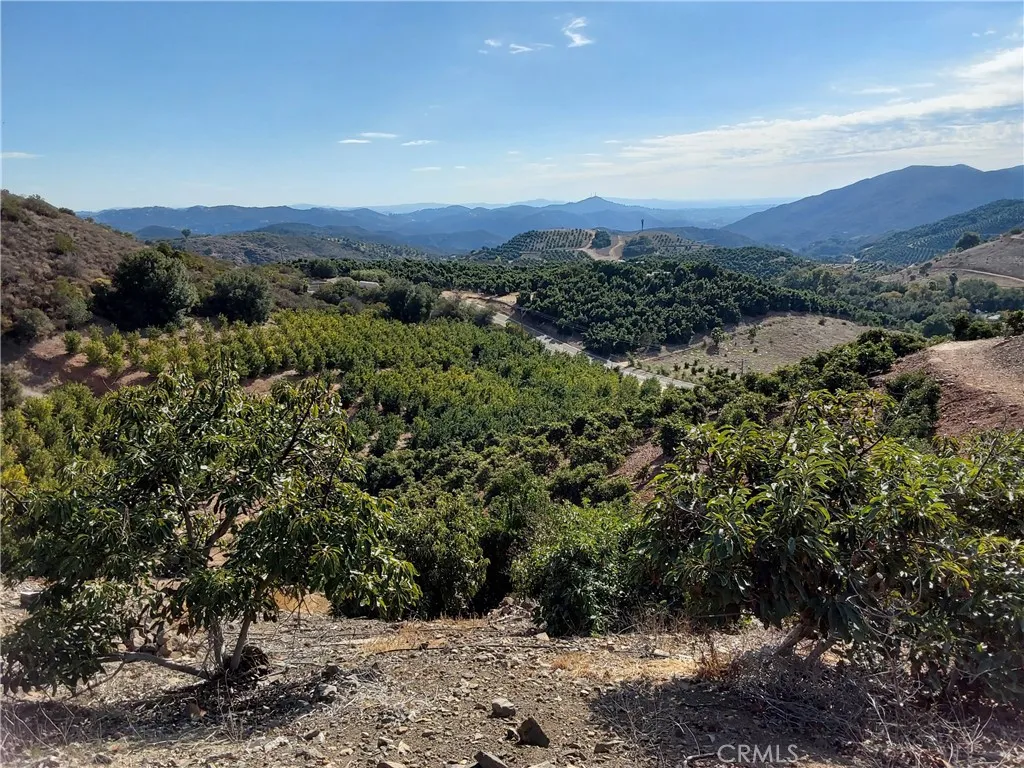 This unique 20+- acre property features an established avocado and tango grove with the majority of the trees less than 10 years old that should provide years of potential agricultural income. Zoned RA 20, this property provides the space and flexibility to create your own private retreat while maintaining the rural character you desire. The panoramic views from various elevated points across the land showcase the stunning countryside and the gently rolling terrain offers multiple ideal locations for building your dream estate home, complete with space for equestrian facilities, guest house, barn, or shop. This rare opportunity combines agricultural potential with residential possibilities, allowing you to craft a lifestyle that perfectly balances privacy with convenience. The established infrastructure includes a 2 inch water meter, connected electric meter, mature fruit trees, and natural water sources providing an excellent foundation for your future plans. Schedule a showing soon, this wont last long.