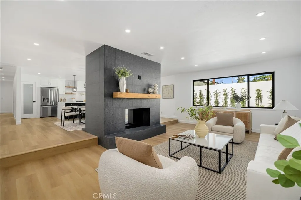 Welcome to your new home! This completely remodeled gem is nestled in an incredible Orange location near top-rated schools. The open-concept living room, family room, and kitchen are ideal for hosting family gatherings or holiday celebrations. With 4 spacious bedrooms, 2 updated bathrooms, and a den/office, comfort and style are seamlessly integrated throughout the home. Enjoy the warmth and charm of a double-sided fireplaceone facing each of the expansive living roomsperfect for cozy nights in. The master suite is a true retreat, featuring a grand master shower and a luxurious walk-in closet. Key features include sleek luxury vinyl flooring, new windows, tankless water heater, modern recessed lighting, and a new HVAC with WiFi-enabled Nest thermostat, adding both convenience and elegance. The chefs kitchen is a dream, showcasing brand-new quartz countertops, cabinetry with gold hardware, butcher block shelving, a charming white herringbone tile backsplash, and a large island ideal for meal prep or casual dining. Step outside through the master bedroom or living rooms large sliders to discover a stunning backyard offering endless possibilities and ample space. It features a beautiful pool and BBQ area. The spacious two-car garage provides plenty of room for storage and parking. This home offers easy access to freeways, shopping, dining, and local attractions, making it the ideal spot to enjoy the best of Orange living. Dont miss out on this opportunity. Come see this gem before it's gone!