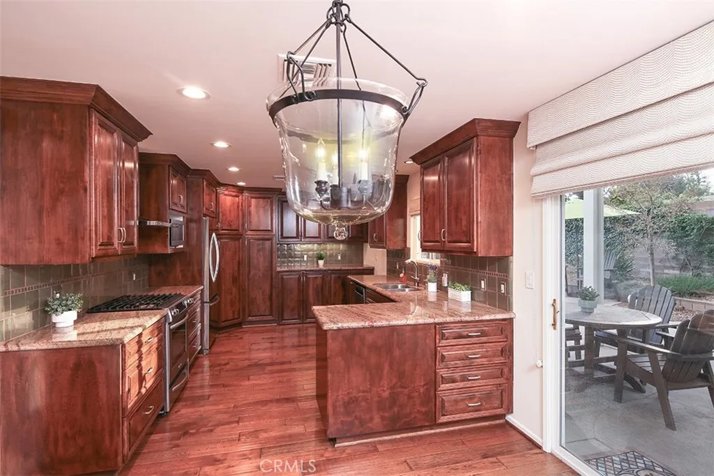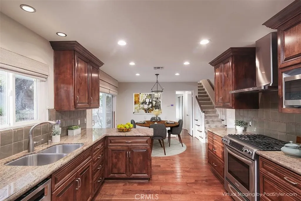 Welcome to this warm and inviting retreat situated on a peaceful cul-de-sac in north Monrovia, well above Foothill Boulevardwhere timeless charm meets modern comfort. First time on the market in over 45 years, this home has been lovingly cared for by its owners, showcasing true pride of ownership and great curb appeal. This beautifully maintained 4-bedroom, 2-bathroom home features high-quality engineered wood flooring throughout the entry, living room, kitchen, and dining area, complemented by plush frieze carpeting in all four bedrooms. Thoughtful upgrades include full copper plumbing, plantation shutters on all bedroom and living room windows, and custom shades on the kitchen windows and dining areas sliding door. Each of the four bedrooms is enhanced with new ceiling fan light fixtures with remote control, adding comfort and convenience throughout. The kitchen is a standout, equipped with high-end stainless steel KitchenAid appliancesincluding the oven/range, range hood, dishwasher, and refrigeratorand enhanced by custom cabinetry with pull-out drawers, soft-close features, and concealed space for the conveniently located laundry machines behind matching cabinet doors. The entryway, dining area, and kitchen feature recessed lighting, creating a bright, contemporary atmosphere. A dual-zone HVAC system provides personalized comfort on both levels, while the freshly painted interior and newer exterior paint add to the homes move-in-ready appeal. The well-designed layout offers a ground-level primary suite, a spacious galley kitchen that flows seamlessly into the dining are
