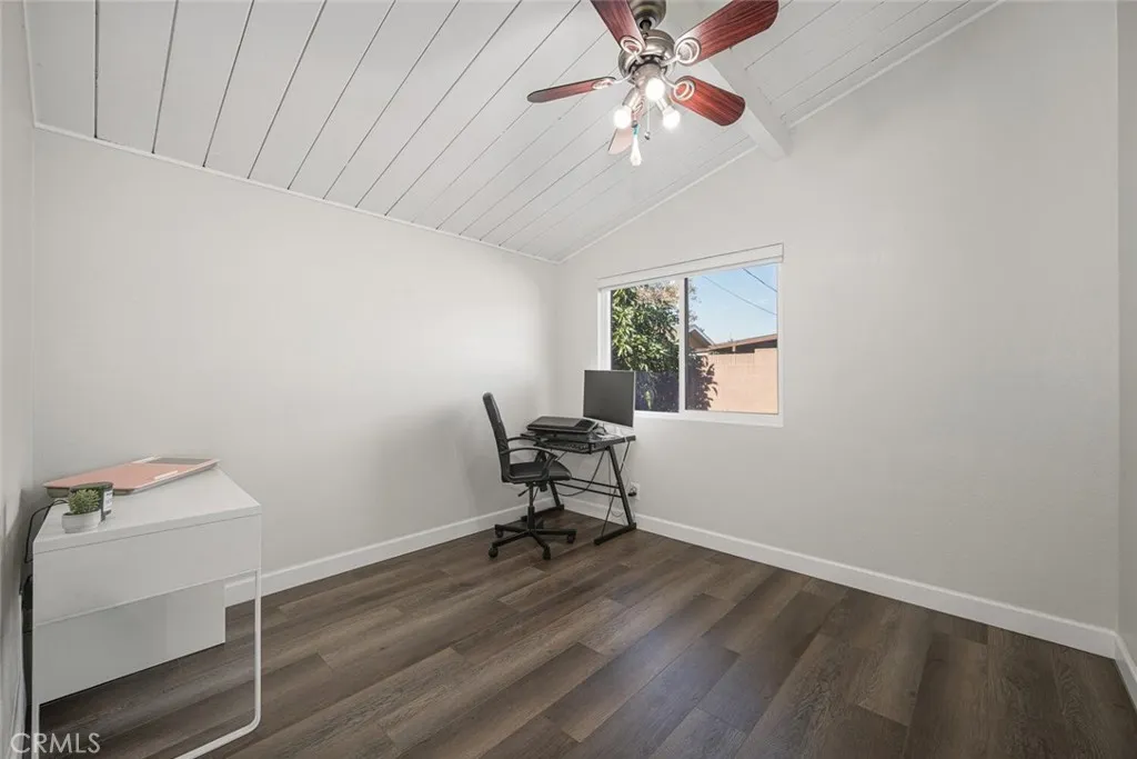 Welcome home to this charming 3-bedroom, 2-bath retreat, expertly updated to blend style and comfort seamlessly. The newly renovated kitchen is a culinary dream, featuring elegant quartz countertops, soft-close cabinets, and a stylish hood. With its open floor plan, this home is perfect for both relaxed living and lively entertaining. Youll love the convenient closet space near the kitchen, adorned with barn doors, and the dining area showcases custom built-ins that add both character and practicality. The spacious master bedroom is a true sanctuary, boasting a newly updated en-suite bathroom complete with a modern shower, chic vanity, and fixtures. Recent enhancements throughout the home include HVAC System with A/C, stucco, exterior paint, beautiful laminate flooring, energy-efficient dual-pane windows, and a newer roof. An inviting office/bonus room offers incredible versatility, featuring internet wiring, stylish new floors, fresh paint, a closet, and a cozy A/C unitmaking it an ideal space for focused work, creative play, or serene relaxation. Step outside to enjoy your own avocado tree, host memorable gatherings, nurture your green thumb, or simply bask in the beauty of nature.