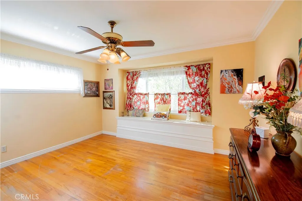 Introducing a cozy four bedroom, two bath home with wood floors throughout on a quiet street in a nice pocket of West Hills! The home offers plenty of parking with an over-sized two car garage plus a carport and ample driveway. The garage offers cabinetry for storage along with a work counter with natural light flowing in from a south facing window. Enter the home and relax in a living room with brick fireplace flowing in to a formal dining area and out to the enclosed patio. The kitchen with tiled counters and floors has bar top serving access to the dining area as well as a small eat-in area. The first bedroom has built in book shelves and direct access to the adjacent bathroom with walk in shower. The adjacent laundry room has side door access leading out to the side yard with easy access to the garage. There are three additional bedrooms down the hall as well as storage cabinets, a hall closet and full bath. The largest bedroom has built in storage cabinets beneath large windows and is adjacent to the hall bathroom. Make some light touch ups and move in or get creative, check with the City, open some walls and entirely re-imagine the space! The backyard has an over-sized storage unit and a small shed, fruit trees, covered patio, brick walk ways and garden like setting. This home is minutes to all major markets, the Village, Westfield Warner Center mall and Calabasas Commons.