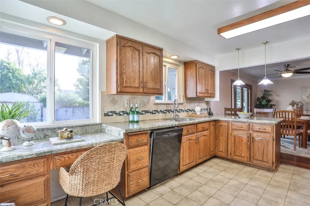 Check out this gem in a quiet, Glendora neighborhood! Imagine the memories you can make in the spacious living room with classy crown molding, inviting laminate flooring that combines warmth and functionality, and tons of natural light from the bay window. Youll love cooking in a kitchen with so much space on the granite counters. The cabinets are high-quality, real wood, and the bottom cabinet next to the stove has convenient pull-out drawers for pots and pans. Enjoy coffee, a snack, and a good conversation at the breakfast bar under the pendant lights. Looking to host family and friends for holidays and parties? The dining room is big enough to accommodate a table for 12. Step through the custom French doors, and youll find a large, covered patio in the middle of a big back yard which can accommodate even more guests. Your guests will appreciate the recently remodeled guest bathroom, and the extra linen closets are located conveniently outside the guest bathroom. The laundry room is on the way to the kitchen from the garage and from the back yard, so its easy to drop dirty clothes from lifes messes into the wash. Direct access to the 2-car, attached garage makes loading and unloading a snap. All the bedrooms have attractive and practical plantation shutters, and the primary bedroom has a private, ensuite bathroom. Enjoy peace of mind with upgrades on all the major systems of the house: copper plumbing, new forced air heater, new A/C unit, new water heater, and a newer roof. Central air and heat combined with ceiling fans and dual-pane windows will keep you comfortable yea