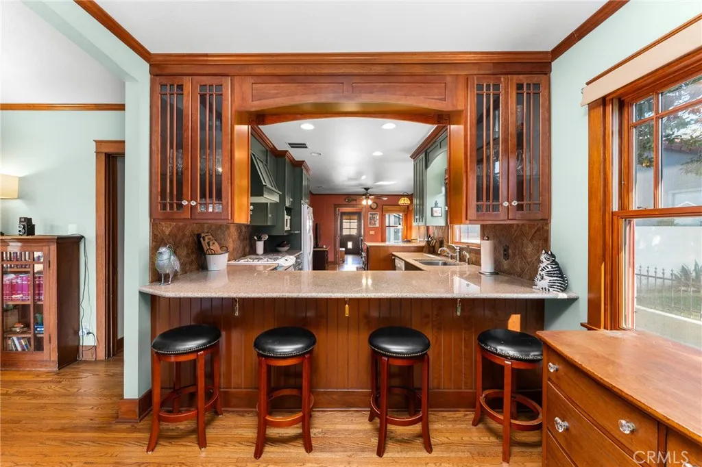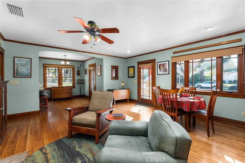 Step into the charm of this 1926 Redlands bungalow, thoughtfully remodeled by architect Erik Peterson. Features 3 bedroom, 2.5 bathrooms, 1688 SqFt, on a 8850 SqFt lot. Located near the University of Redlands, this home blends classic character with modern comfort. A welcoming front porch offers multiple sitting areas perfect for enjoying quiet mornings or greeting friends and neighbors. Inside, youll find original hardwood floors, as well as cork flooring, rich mahogany woodwork, and custom cabinetry that showcase the craftsmanship of the era. The kitchen features granite countertops, generous storage, and unique Redlands citrus-themed tile-work that adds a touch of local history. The spacious primary suite includes a walk-in closet, a relaxing bathroom with a jetted tub, separate walk in shower, and double vanity. The large backyard provides exceptional outdoor space with ample parking, RV parking, a carport, and convenient alley access. A versatile detached studio offers endless possibilities as an ADU, art space, game room, gym, or creative retreat. This home also carries a bit of Redlands pride, having been featured on the YMCA Home Tour in 2009. A rare blend of historic charm, thoughtful upgrades, and usable outdoor space this bungalow is ready to welcome its next chapter.