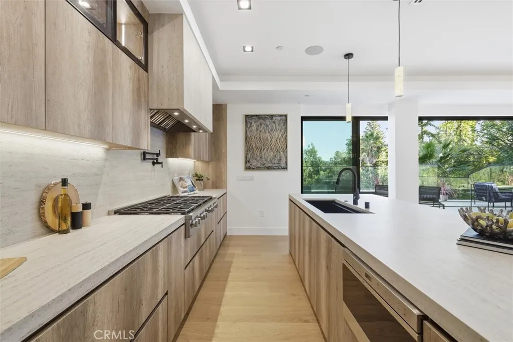 BRAND NEW MODERN LUXURY HOME IN ENCINO HILLS! ( Motivated Seller!) Step into your dream home with this stunning, newly built masterpiece located in the tranquil Encino Hills, just south of the Boulevard. This spacious residence offers approximately 4,282 sq ft, featuring 5 beautifully designed bedrooms and 5 full bathrooms, perfectly blending contemporary aesthetics with the comforts of everyday living. Imagine gathering with family and friends in the open floor plan, where expansive glass doors invite sunlight and showcase breathtaking views of the lush hills and woods. The heart of the home, the elegant main kitchen, is equipped with a sleek island and top-of-the-line finishes, complemented by a fully equipped Butlers kitchen to make entertaining effortless. As you flow from the living areas to the outdoor patio and cantilever pool, youll feel the seamless connection to nature, perfect for enjoying the California lifestyle. Whether sipping your morning coffee or hosting sunset gatherings on the rooftop deck with panoramic views, this home is designed for making cherished memories. Additional highlights include a 2-car garage, energy-efficient solar panels, custom cabinetry, designer finishes, and meticulously crafted Dekton stone countertops, all adding to the homes allure. This residence offers not just a place to live, but a sanctuary of peace, privacy, and sophistication. Embrace the modern Encino lifestylewhere elegant architecture meets relaxed luxuryjust minutes from fine dining, shopping, and the vibrant energy of the Boulevard. The sellers motivation to move means