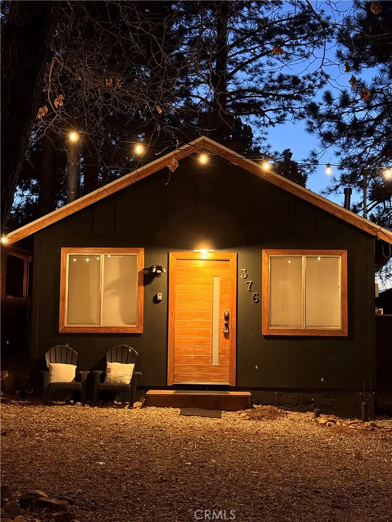 MAJOR PRICE ADJUSTMENT! Best price in the area for a move-in ready home just in time for cool mountain days and crisp starlit nights in Big Bear and Sugarloaf. This modern mountain cabin delivers the upgraded, low-maintenance retreat buyers want, with a fresh designer look and easy access to National Forest land, Pebble Plains Nature Preserve, Sugarloaf Park, local trails, shopping and mountain amenities. Enjoy four-season living where summer days stay cooler, evenings invite you outside, and snowy winters deliver perfect mountain days. Tucked on a quiet street in central Sugarloaf, this cabin is ideal as a full-time home, weekend escape, or turnkey rental. The open-concept living and kitchen area creates a relaxed hub after a day on the slopes, trails or lake. The living room features a beautiful wood-burning stove as its cozy centerpiece, plus updated flooring, baseboards, interior paint, fixtures and window coverings for a clean, modern-cabin feel. The upgraded kitchen offers stylish tile, open shelving, updated cabinetry, quartz counters and modern appliances for everyday cooking, hosting guests or prepping for short-term rental stays. The bedroom and bathroom continue the retreat-like vibe with simple, thoughtful design and practical storage. The bathroom includes a quality vanity, upgraded tub and shower fixtures, and spa-inspired finishes. A level, graveled driveway, horizontal ranch-style fencing, fresh exterior paint and new privacy fencing in back provide easy access and curb appeal. Trees near the structure have been removed, opening the lot for better use, safer