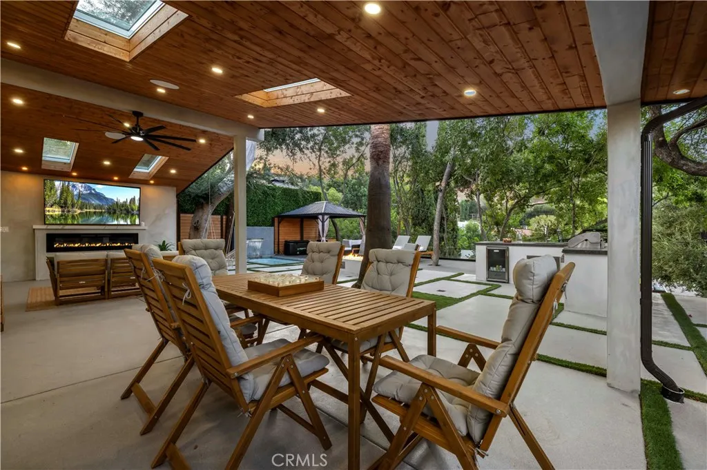Modern Innovation Meets Timeless Elegance At 22263 Flanco, Fully Furnished, every detail has been curated to elevate your lifestyle, blending cutting-edge technology with classic design elements in a way that feels both fresh and enduring. Nestled in a serene neighborhood, this residence offers an inviting retreat where comfort, style, and innovation live side by side. From the moment you arrive, the homes redesigned landscaping makes an unforgettable impression. Lush plantings, thoughtfully placed lighting, and welcoming pathways create a sense of tranquility and showcase the propertys curb appeal. Inside, the open-concept living and dining areas are bathed in natural light, with the seamless indoor-outdoor flow making entertaining a breeze. At the heart of the home is a gourmet kitchen with high-end Miele appliances, generous Quartz countertop space, and custom Walnut cabinetrya culinary environment designed to inspire. Each bedroom has been designed as a private sanctuary, with high end materials, offering an ideal balance of comfort and style. The primary suite features a spa-inspired en-suite bath and a spacious walnut walk-in closet, providing a daily retreat that feels indulgent yet serene. Outdoors, a beautifully landscaped backyard awaits, complete with dedicated spaces for al-fresco dining, gardening, relaxation, and even a private dog parkan ideal feature for pet owners who want convenience without sacrificing beauty. Technology amplifies every aspect of this property, with its features thoughtfully reimagined in 2024 and further enhanced in 2025. A state-of-the-