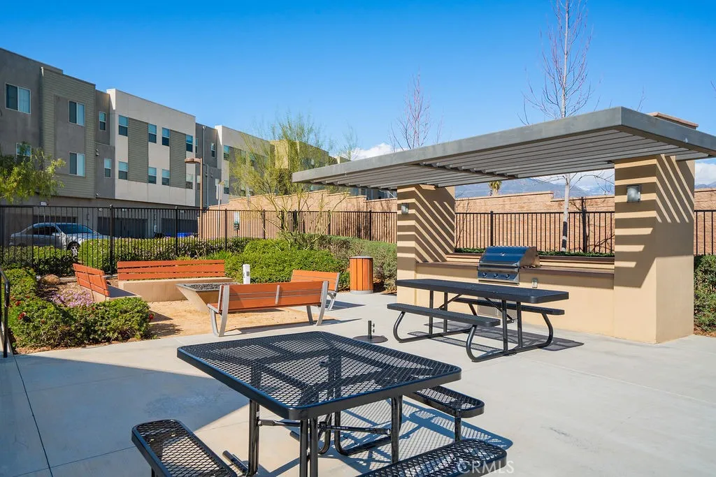 Built in 2017 and impeccably maintained, this contemporary multi-level townhome offers comfort, style, and breathtaking views of the San Gabriel Mountains. Thoughtfully designed by the builder to maximize light and scenery, the community showcases timeless modern architecture youll love. The first level features direct garage access and a versatile room ideal for a home office or additional bedroom, complete with a private patio, ADA-compliant full bathroom, custom shades, and ample flexibility. The second level opens to a bright and airy living space anchored by a sleek modern kitchen with stainless steel appliances, white cabinetry, and elegant stone granite countertops. A spacious pantry offers additional storage or the perfect spot for a custom coffee station. Step out onto the living room balcony to enjoy your morning coffee with peaceful community views. A convenient guest bathroom on this level makes entertaining easy.Upstairs, the third level boasts two generously sized primary suites, each featuring deep walk-in closets, double-sink vanities, and beautiful mountain views. A dedicated laundry room with storage sits conveniently between the suites. Natural light fills every level, enhancing the open layout. Custom plantation shutters accent the windows, complementing the rich wood flooring and light-colored carpeting throughout. Residents enjoy resort-style amenities including a community pool and BBQ areas, all while being just minutes from Target, shopping, dining, the mall, and quick access to the 10 and 210 freeways.