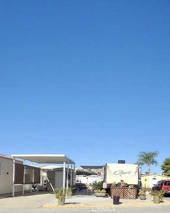 OWN THE LAND!! Desired Mt Shadows RV Resort Gated 55+ Senior Community. One of the largest "A" lots approx. 2614 sq ft & best locations in the community just a few steps from the main clubhouse & amenities. Full length covered carport to park two large cars, concrete slab covers the lot with backyard brick pavers. Tall vinyl fencing great for privacy or entertaining. Improved storage shed (WASHER & DRYER INCLUDED) The resort is located on the S.W. corner of the City of Hemet, only minutes from the Diamond Valley Lake and recreation center, a short drive to Temecula wine country, mountains and beaches. Close to Urgency medical care, grocery shopping and restaurants. Two club houses to choose from with many amenities including heated saltwater pool, spas, billiards, shuffleboard, picnic areas, gathering areas, large community kitchens, exercise rooms, restroom and showers, laundry rooms, horseshoe pit, ping pong tables, corn hole and more. Full time manager, office and maintenance staff are on duty five days a week year-round. Security staff are on site 7 nights a week, year-round. Low Taxes & HOA Fees of approx. $292.00 a month "ONLY" includes water, sewer, trash, cable television & internet. The association has an activities committee that plans and organizes an incredible array of events and activities monthly including luncheons, exercise classes, special occasion dinners, matinees, bingo, karaoke and much more. Retire in style!
