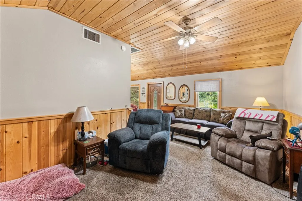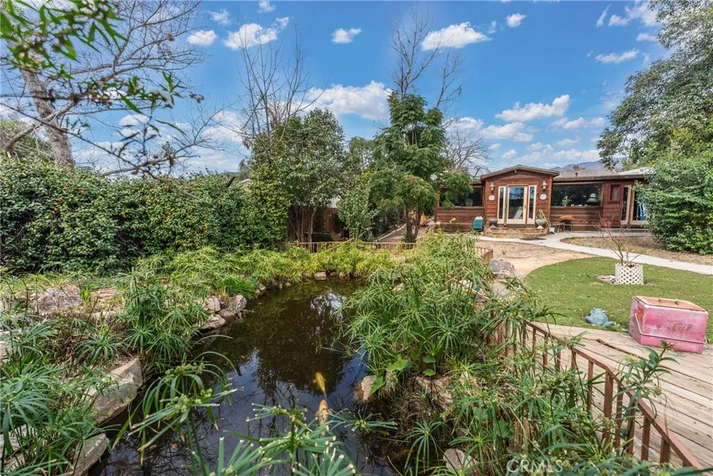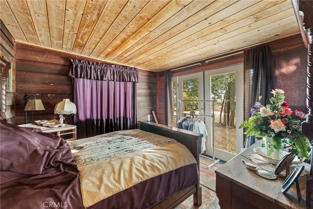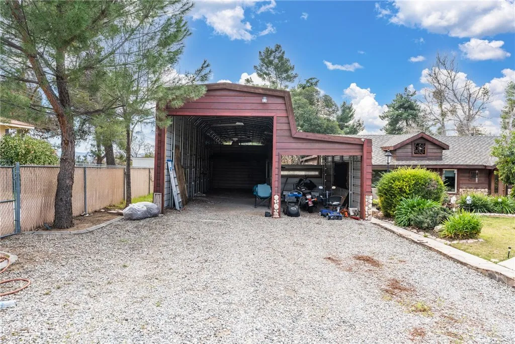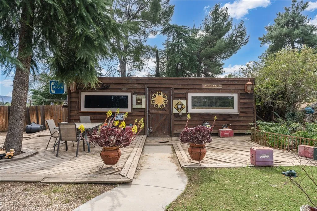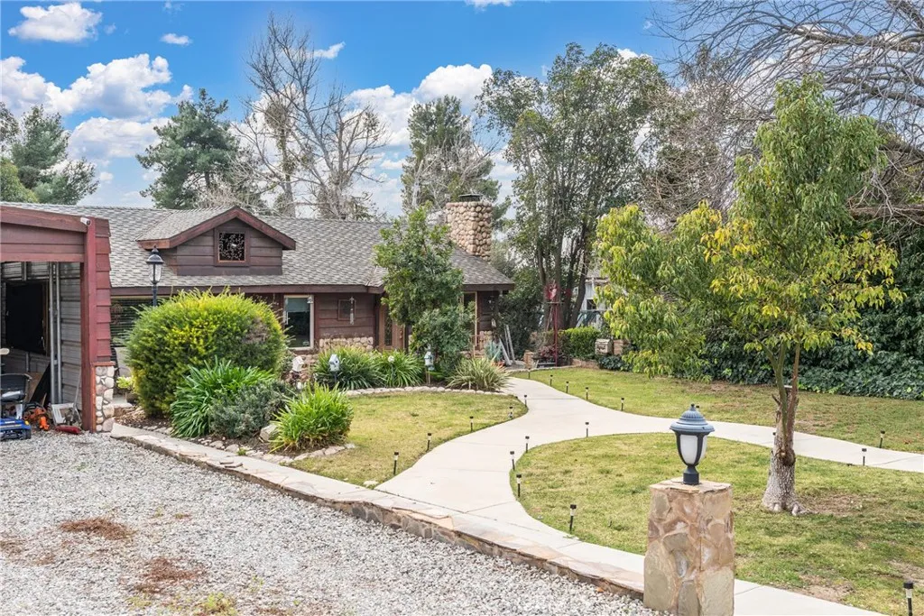 Hand-Crafted Custom Home on Acre Compound. Tucked away on a private street in the desirable Cherry Valley area, this truly rare and unique property feels like your own mountain retreat, one you must see to fully appreciate! This 3-bedroom, 2-bath home (bonus room currently used as a third bedroom) features a rustic aesthetic with natural cedar wood and stone throughout. The interior is defined by the rich warmth of cedar, showcased across vaulted ceilings and hand-crafted framing that carries through the entire floor plan. At the heart of the open living space is a cozy central stone fireplace, creating the perfect gathering spot. The kitchen offers plenty of storage with a kitchenette, a deep pantry, and a separate dining area. A versatile back area with French doors provides an ideal space for a home office or family room, along with the convenience of an indoor laundry area and full bath. Outside, the landscaping creates a year-round sanctuary with mature trees, fruit trees, and a tranquil koi pond complete with koi fish, all on a large lot of 21,780 sq ft. For those needing space, the property includes 53-foot and 40-foot storage trailers for secure, weatherproof storage, one equipped with electric and water connections, plus an oversized RV carport metal building ready for all your storage and recreational needs. This is a rare opportunity at an affordable price, dont miss it!