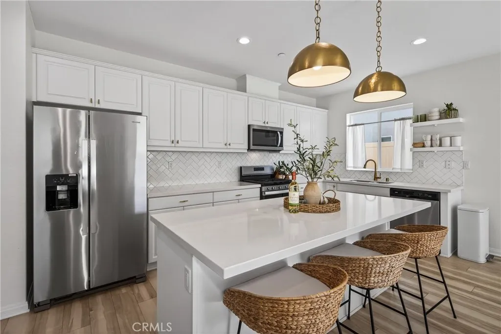 This home truly checks all the boxes: Prime location in the Spring Mountain Ranch community, smart layout, modern upgrades, and an easy, low-maintenance lifestyle. Ideal for a first-time buyer, growing family, or savvy investor, this thoughtfully designed residence offers comfort and functionality throughout. The open-concept first floor seamlessly blends the kitchen, living, and dining areasperfect for everyday living, entertaining, and multitasking. The kitchen is a standout, featuring a large center island, upgraded quartz countertops, stylish backsplash, pendant lighting, recessed canned lights, and upgraded cabinetry, all complemented by durable vinyl flooring and 9-foot ceilings that enhance the sense of space and light. Media cord-hiding outlets add a clean, modern touch. Upstairs, youll find all three bedrooms, a versatile loft ideal for a home office, gym, or play area, and a convenient laundry room, keeping daily routines efficient. The bedroom layout offers privacy and separation from the main living spaces, while a downstairs half bath is perfect for guests. Additional highlights include: Leased Solar at approx. $117/month Low HOA of approx. $110/month Open floor plan with abundant natural light. Upgraded lighting and finishes throughout. Located in a well-maintained community close to shopping, dining, schools, and commuter routes, this home delivers modern living with long-term value. Come see if this is the home for you before it is gone...