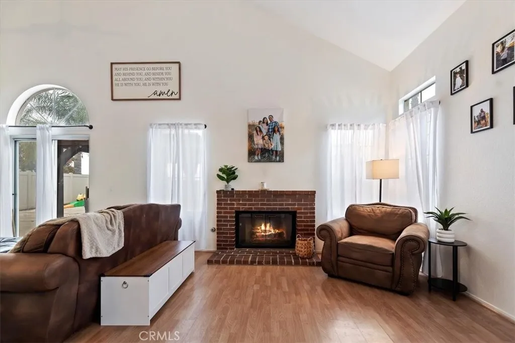 Welcome to Orangecrest! This delightful 3-bedroom, 2-bathroom home spans 1,760 square feet across two stories and is ready for you to move in. Situated in the highly sought-after Orangecrest neighborhood of Riverside, it's within walking distance of award-winning elementary and middle schools and MLK High School. Just a short stroll from Orange Terrace Park, the library, and a community center surrounded by sports fields for year-round fun. As you enter the home, the foyer opens to a spacious living room, perfect for a reading nook by the timeless brick fireplace, along with a cozy TV area and high vaulted ceilings. The kitchen offers ample cabinet space and a separate walk-in pantry, extending into a dining area that comfortably fits a family-style table and an office nook or study corner. Up the newly carpeted stairs, the primary bedroom awaits, offering generous space, natural light, a wall-length closet with mirrored doors, and views of the orange groves. The primary bathroom suite features dual vanity sinks, a shower-tub combo, and a separate toilet area. Down the hall, you'll find a small loft with storage, two additional bedrooms (one with a spacious walk-in closet), and a freshly re-glazed shower-tub combo in the hallway bathroom. The backyard is a perfect blend of grass and concrete, with a block wall for privacy. Enjoy outdoor meals under the large covered gazebo with decking and hanging lights. This home boasts solid construction, with a new air-conditioning system, furnace, interior and exterior paint, water heater, and upstairs carpet all updated within the las