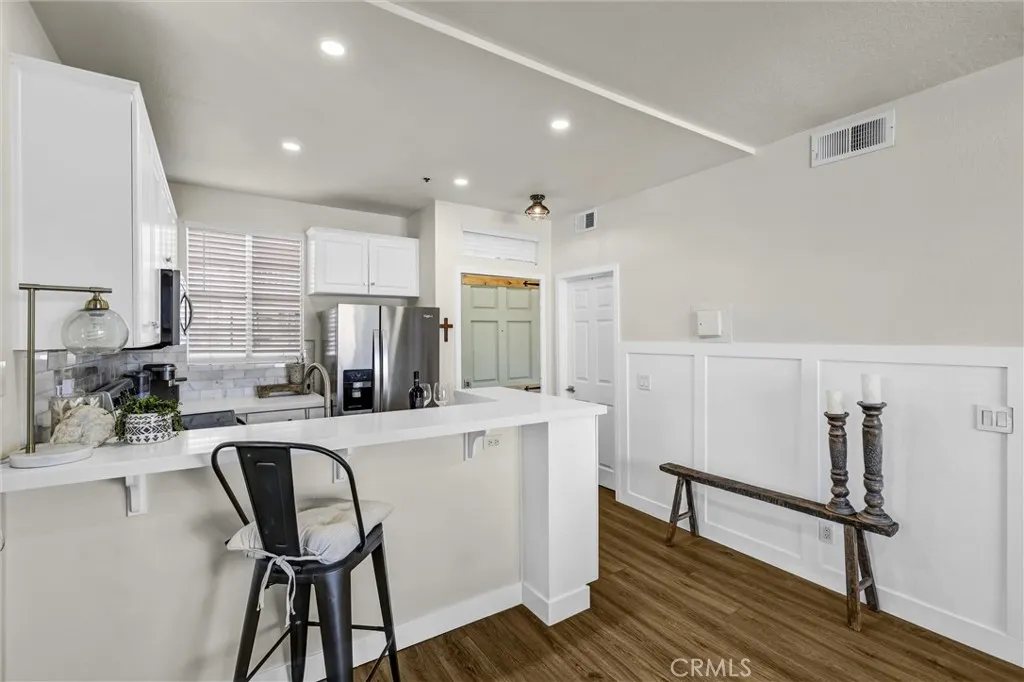 Welcome to coastal living at its finest in the Seabridge community of Huntington Beach. This rare end-unit studio offers privacy and comfort with no shared side walls. Perfectly positioned as a desirable corner unit, this light and bright home features a balcony off the living room with a storage unit. With ample space for a BBQ, dining table the outdoor area becomes a true extension of your living space. The large sliding glass door opens wide for seamless indoor-outdoor livingideal for morning coffee or relaxing evenings with sunset cocktails. Inside, the thoughtfully updated white kitchen is equipped with a stainless-steel refrigerator and clean, modern finishes. Sunlight pours in through abundant windows creating a warm and inviting atmosphere. The bathroom has been tastefully upgraded with white cabinetry, generous mirrored closets, and additional storage conveniently located beside the oversized stainless-steel washer and dryer. Located just steps from the pool and jacuzzi, surrounded by lush tropical landscaping, this unit offers both convenience and tranquility. The home includes one assigned underground parking space plus plentiful guest parking within the gated entrance. Residents of Seabridge enjoy guard-gated security and resort-style amenities including two sparkling pools and spas, a fitness center, sauna, tennis courts, scenic walking paths, and a recreation room available for private events. Just one mile from the beach and moments from Pacific City, Main Street, and the iconic Huntington Beach Pier, youll have easy access to dining, shopping, and everything