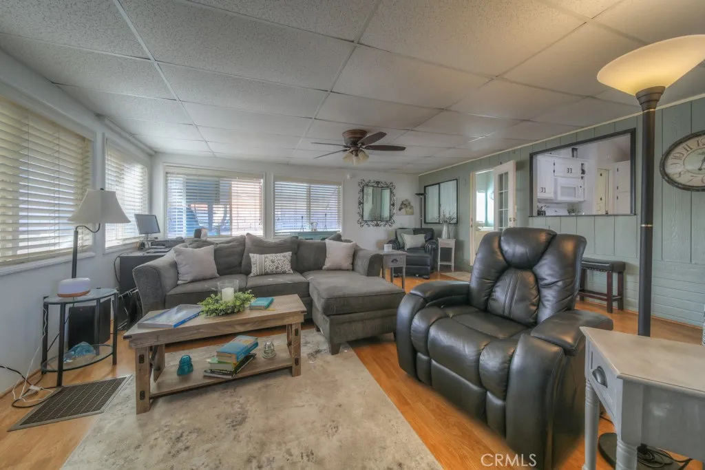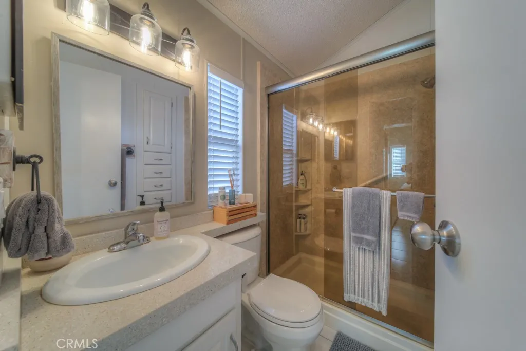 Welcome to the Desired Mountain Shadows RV Resort! A Gated 55+ community where you own the land beneath your home. This Unique home is one of the largest in the community. Its large living room is approximately 17x19, adding approximately 323 sq ft, and opens to a double-door exit to your outdoor deck, ideal for entertaining guests or relaxing after a long day at the community pool. The kitchen has stone countertops and newer white subway tile backsplash. The 1-bedroom includes mirrored wardrobe doors and a new fan lamp. The bathroom has been updated with a walk-in shower and is well maintained. Some home features include newer paint, carpet, and blinds. It's ready for you to move right in. Oversized lot approx 2614 sqft with a covered carport and shed with washer/dryer hookups. Community has 2 clubhouses, a heated saltwater pool, spas, indoor and outdoor kitchens, a billiards room, shuffleboard, an auditorium, all this and more. Low HOA of $292 a month, which includes water, trash, sewer, basic cable, and internet.