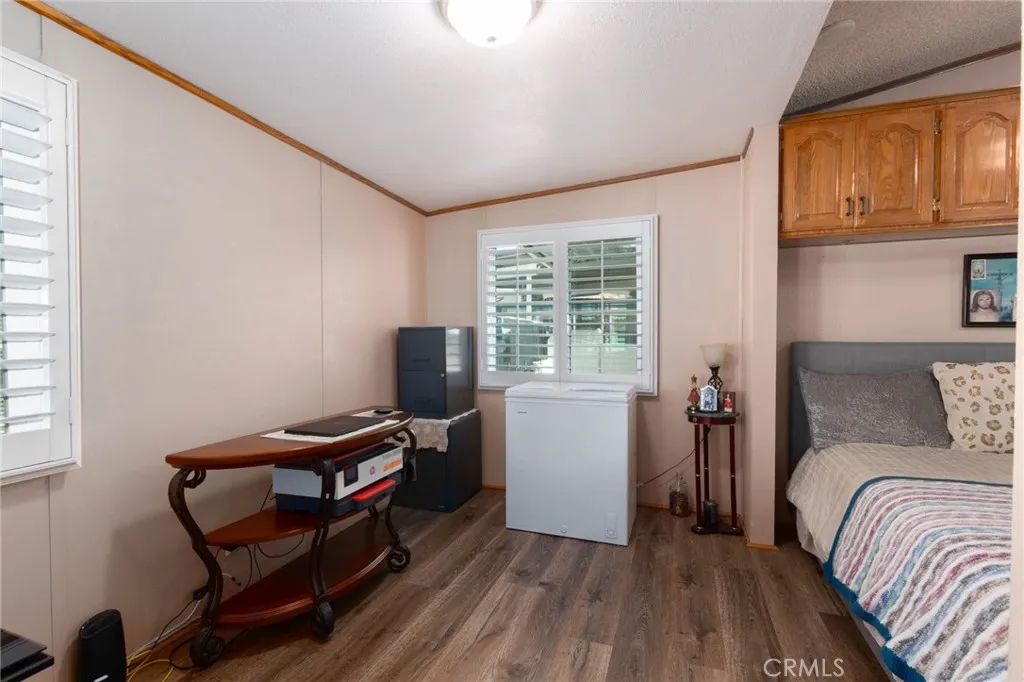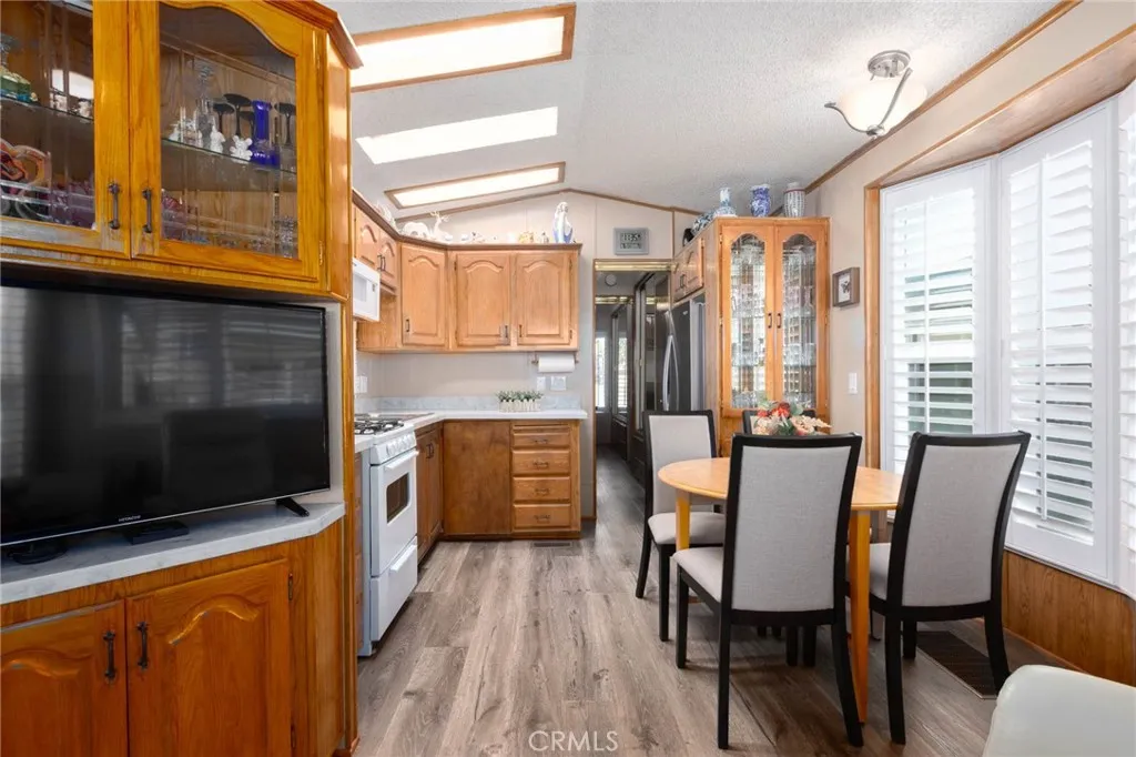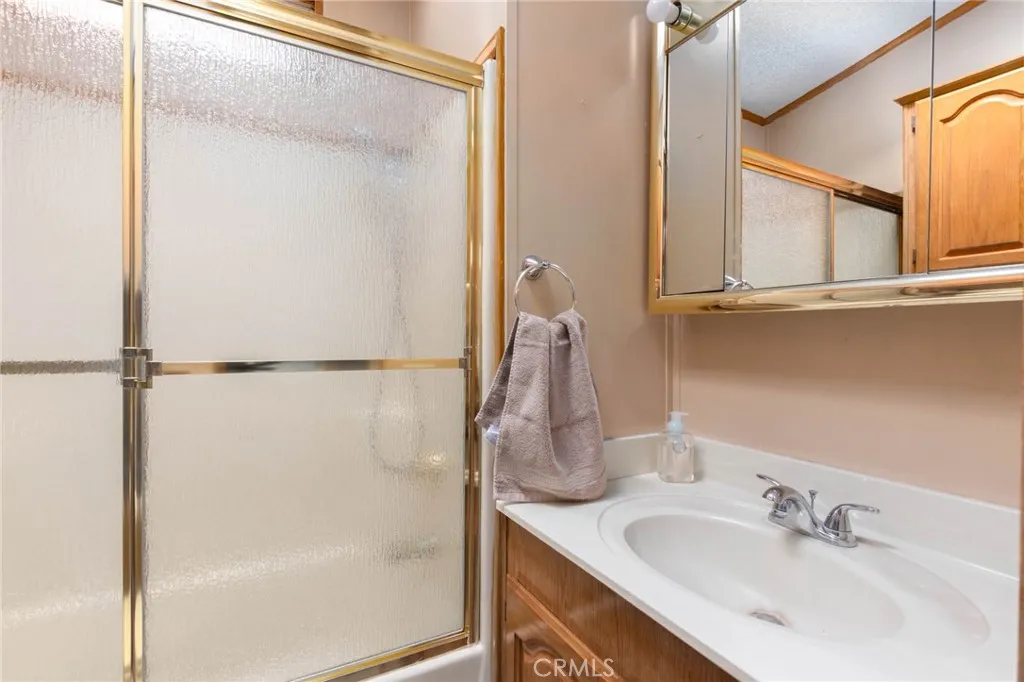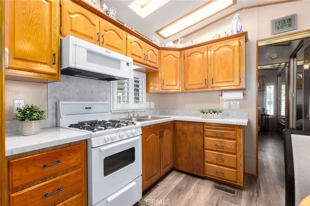 Set in the gated 55+ resort community of Mountain Shadows, you OWN the land beneath your home with NO space rent. This stylish and TURNKEY 1 bedroom home with huge bonus room is an entertainers delight. Home has been remodeled top to bottom showcasing the elegant interior and open floor plan. Newer skylights, ceiling fans, and lighting fixtures are featured throughout the home. The home is appointed with natural looking wood like flooring. Your chef will appreciate the gas stove, refrigerator and custom Quartz countertops with backsplash. So much storage inside and out. The exterior showcases 6 foot vinyl fencing and easy-to-maintain hardscape so you can spend more time enjoying the sunsets and all this resort community has to offer. Once you step outside, relax under the expansive wraparound covered deck suitable for entertaining and taking in the mountain views. The newly painted shed includes custom closets, washer and dryer hookups and so much storage space. Check out the supplements to see ALL the updates. This fantastic 55+ community features state of the art amenities including pool, spa, club house, many events for the active lifestyle: Community dinners, dances, and Saturday Breakfast. So much to do in this gated resort community. HOA $293/month and covers water, sewer, trash, wifi and cable. This scenic oasis awaits you.