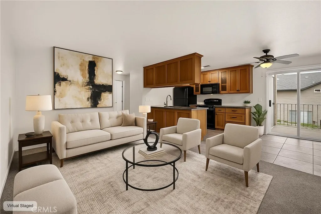 Fabulous opportunity! Welcome to this adorable condo in Sawgrass Estates! Featuring 3 bedrooms and 2 bathrooms, this upstairs unit overlooks the complex and is perfect as a first home or an investment property. The entry provides an open concept to the kitchen and dining area with a sliding glass door opening to a private balcony. The primary bedroom is the first room you'll see from the living room with its own patio and connected bathroom. You'll find the second bathroom down the hallway and the laundry closet at the end of, complete with washer and dryer. To the sides of the laundry area, you will find the additional bedrooms, both with 2 sets of windows giving views overlooking the rest of the complex. New window coverings and carpet were just installed along with a new refrigerator and range presenting a superb move-in ready unit! The Sawgrass Estates HOA provides a swimming pool and exercise amenities as well as covering the sewer and water expenses each month. Whether you are a first time buyer or looking to expand your portfolio, you don't want to miss out on this wonderful opportunity. The complex is close to Highway 99 and other amenities such as Bidwell Perk, Safeway, Starbucks and a variety of schools!