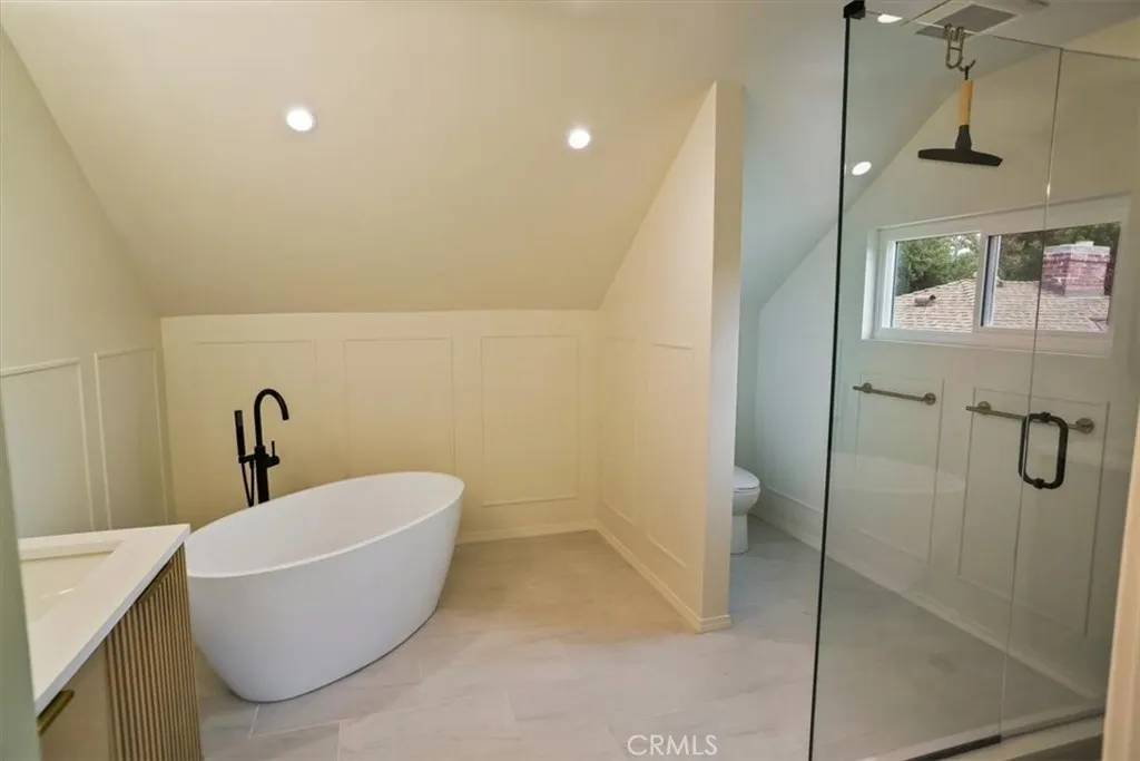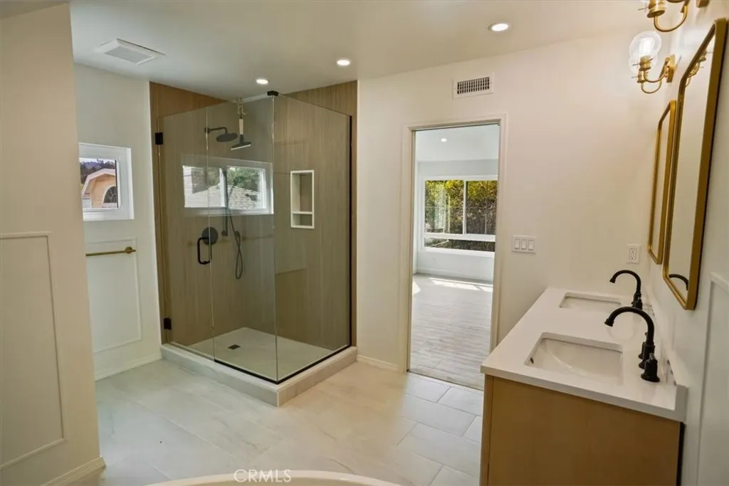 Located in the heart of the Burbank Rancho is this equestrian home. This fully remodeled Spanish-style home features 4 bedrooms and 3 bathrooms across 2,400 square feet of bright, airy living space. This property has a 3-horse stable with turnout and is in close proximity to Griffith Park and Disney Animation Studios. Inside, a vaulted-ceiling entryway and elegant Spanish tile foyer lead to a modern kitchen with brand-new appliances. The home has been thoughtfully redesigned throughout, with all-new windows, flooring, recessed lighting, HVAC system and more. All three bathrooms have been fully remodeled with premium finishes. The spa-like primary suite features dual sinks, a freestanding soaking tub, a walk-in shower, and a cozy gas fireplace one of three in the home. The fourth bedroom, located downstairs with its own private entrance and bathroom / laundry, is ideal for an in-law suite, au pair / nanny quarters, or guest accommodations. Outside, equestrian enthusiasts will appreciate the full 3-horse barn and turnouts. The spacious backyard includes mature orange and fig trees, and a large pergola perfect for entertaining. The two-car garage provides ample storage and direct access, and the home sits on a quiet residential street with easy access to riding and walking trails.