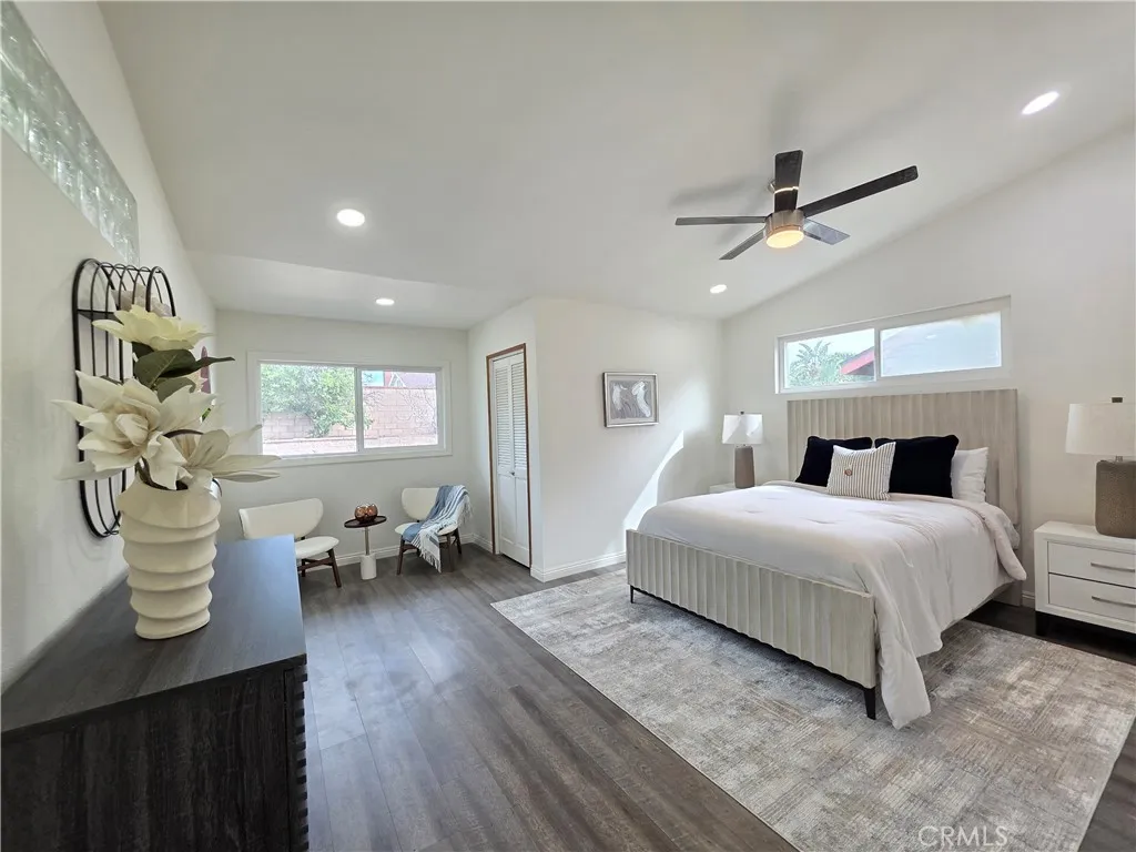 Welcome to this beautifully updated single-story home in Ontario offering comfort, style, and convenience all in one. This 4-bedroom home features a thoughtfully renovated interior with a new kitchen, fresh interior paint, and new recessed lighting, creating a bright and modern living space. Dual-pane windows invite an abundance of natural light while enhancing energy efficiency. Newer roof from 2022. Enjoy seamless indoor-outdoor living with a spacious enclosed sunroom (308sqft) perfect for relaxing, entertaining, or creating a versatile bonus space. The large backyard with fruit trees provide endless possibilities for gatherings, gardening, or future customization. A charming front courtyard adds curb appeal and a private outdoor retreat. Oversized primary bedroom offers a seating area plus 2 closets (one walk-in closet), dual sinks, soaking tub with separate shower. Ideally located near Ontario High School, shopping centers, restaurants, and convenient access to the 60 freeway. This home offers both tranquility and accessibility.