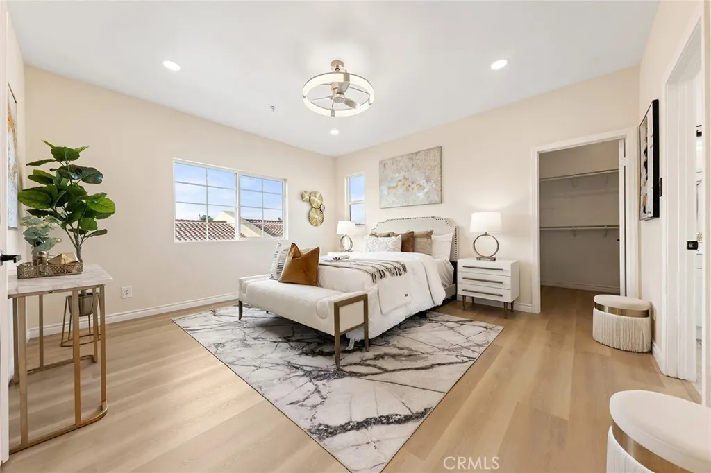 Welcome to this beautifully reimagined 2005-built residence showcasing dramatic 19-foot ceilings, abundant natural light, and refined contemporary finishes throughout. Upon entry, you are greeted by a soaring double-height living space enhanced by a striking designer chandelier that adds architectural elegance and visual impact. The home has undergone extensive interior upgrades, including fresh paint throughout, brand-new flooring, and a fully rebuilt staircase with clean, modern lines. The redesigned kitchen features sleek cabinetry, elegant surfaces, and premium brand-name appliances, including a high-quality range, dishwasher, and range hoodblending style and performance seamlessly. All three bathrooms have been completely renovated with modern finishes and updated fixtures, delivering a polished, sophisticated look. Additional improvements include dual-pane windows, a recently updated HVAC system, curated designer lighting, and energy-efficient LED fixtures throughout the home. Enjoy generous spacing between neighboring properties for enhanced privacy, along with a well-proportioned backyard ideal for relaxing or entertaining. The front yard has been newly refreshed with low-maintenance artificial turf, providing clean curb appeal year-round. A spacious three-car garage offers ample parking and storage. Situated in a well-maintained community with an exceptionally low HOA of only $115 per monthcovering master structure insurance, water, common area electricity, and landscapingthis home combines luxury upgrades with outstanding value. Conveniently located near shopping,