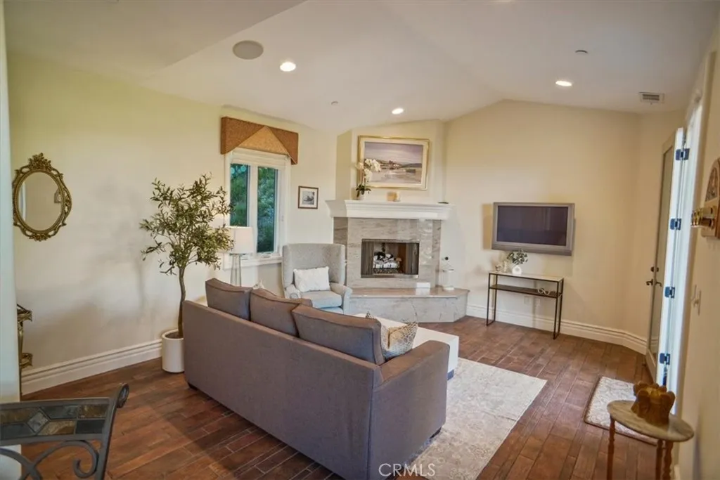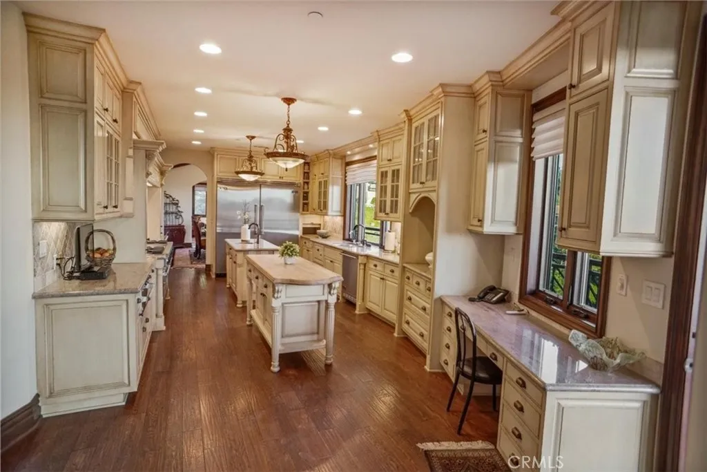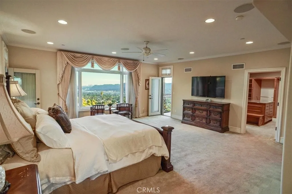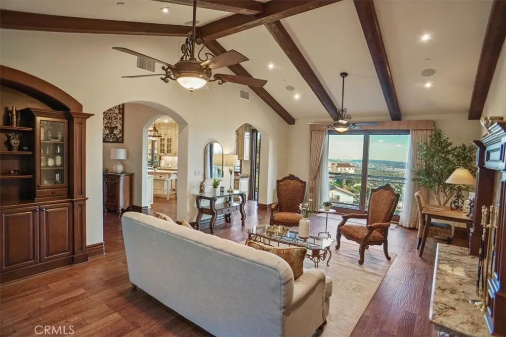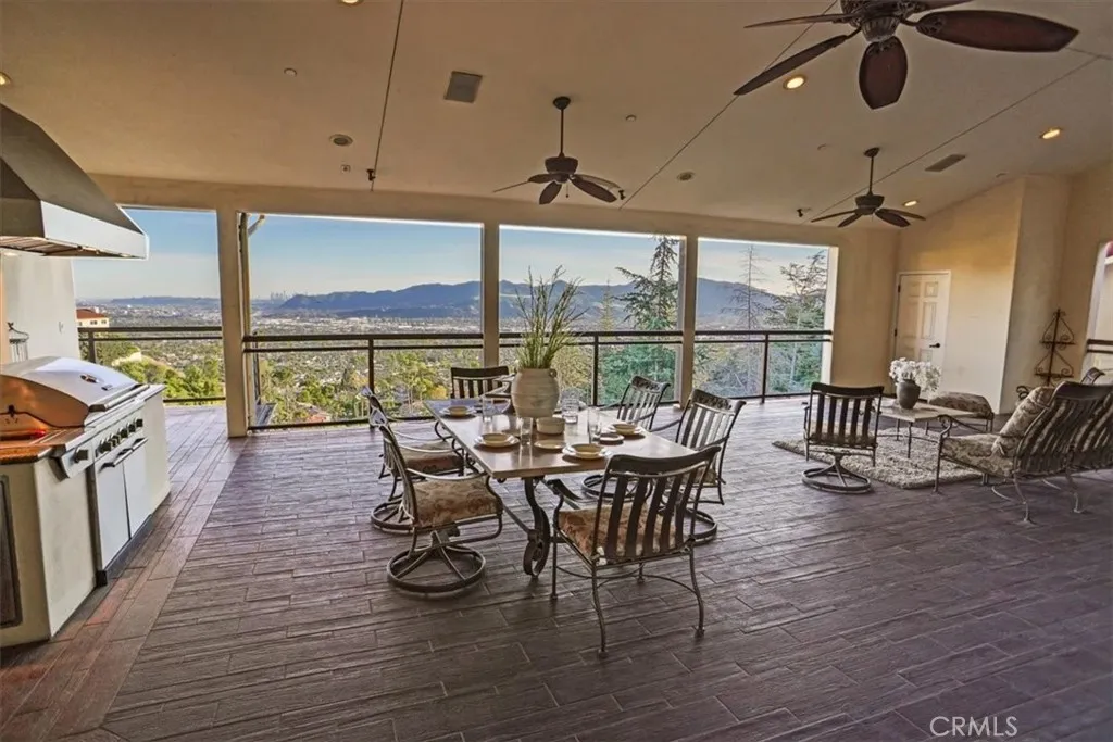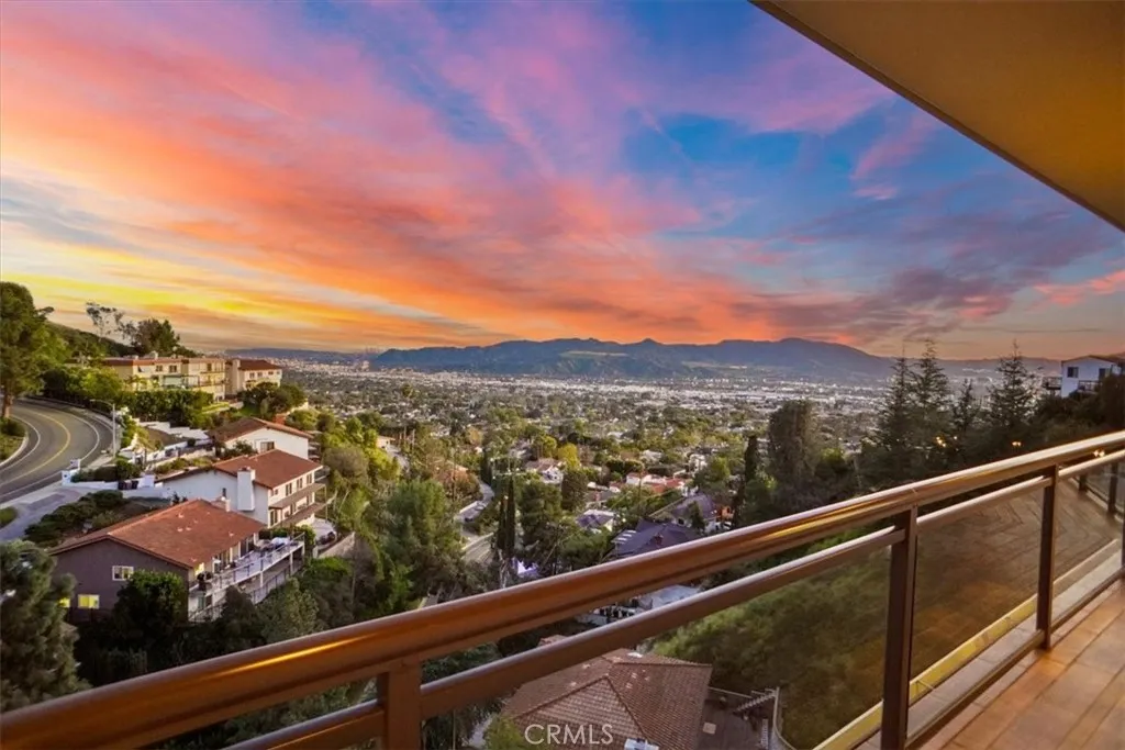 A gated Mediterranean compound in the Burbank Hills commanding 150-degree panoramic views -- from the San Gabriel Mountains to the Downtown LA skyline -- from virtually every room. Set on 1.3 private acres behind a wrought-iron gate at the end of its own driveway, this 7,000+ SF estate offers 7 bedrooms and 9 bathrooms across multiple levels connected by a private wood-paneled elevator. The crown jewel is The Sky Terrace -- an expansive covered outdoor living room with a professional Viking kitchen, built-in fireplace, and sweeping sunset views that make this unlike anything else in the San Fernando Valley. It is, quite simply, the best seat in Burbank. A chef's kitchen with dual islands, Viking appliances, custom cabinetry, and stone countertops anchors the main level, flanked by formal living, family, and dining rooms with exposed beam vaulted ceilings and walls of sliding glass doors that dissolve the line between inside and out. The primary suite features a spa-caliber bathroom with jetted view tub, walk-in shower, and a boutique-level closet with center island. The detached 1BR/1BA guest house with full kitchen, living room w/fireplace provides turnkey living quarters for family or guests. Below the second garage lies a massive 1400 SF basement awaits your vision -- theater, gym, or wine cellar. Four fireplaces. Built-in surround sound throughout. Resort-style pool with sunset views. 7-car garage across two structures (3 attached + 4 detached with laundry). Custom-built in 2007 to estate standards. A true compound at an elevation few properties can match. Explore the f