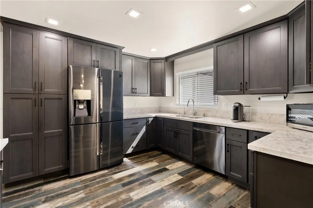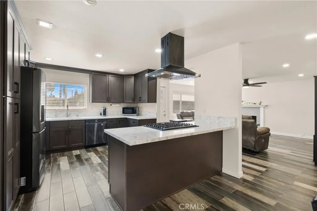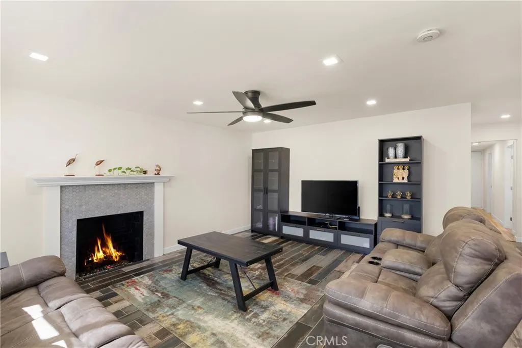 Located in a uniquely private setting with only one neighboring home, 13651 Olympic Avenue offers a rare sense of space and separation that is hard to find. This single story residence features four bedrooms, two bathrooms, and approximately 1,493 square feet of living space with an open layout that creates an easy flow between the living, dining, and kitchen areas. The home has been remodeled throughout, highlighted by a newer kitchen with custom cabinetry, quartz countertops, and stainless steel appliances. Wood look tile flooring runs throughout the main living areas, including the kitchen, while laminate wood flooring is featured in the bedrooms. Recessed lighting and newer interior and exterior paint add to the homes clean and updated feel. Both bathrooms have been tastefully remodeled with custom vanities and designer tile work, including a walk in shower in the primary bathroom and a shower and tub combination in the guest bath. The wraparound backyard provides multiple outdoor areas to relax or entertain, featuring a spacious concrete patio and an abundance of mature fruit trees (avocado, pomegranate, orange, lemon, and apple). Additional features include solar panels and a functional floor plan that maximizes the homes single story layout. Conveniently located near popular Orange County destinations including The LAB, The CAMP, and South Coast Plaza with a wide variety of dining, shopping, and entertainment nearby. Homes with this level of privacy, thoughtful updates, and a flexible single story layout are rare to find. Come experience 13651 Olympic Avenue for your