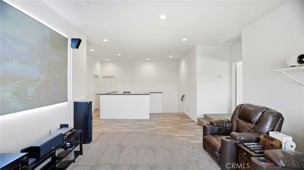 NEW PRICE! Where thoughtful design, technology, and lifestyle upgrades come together in one remarkable home! The open-concept layout welcomes you with a warm living room fireplace that flows into a beautifully appointed kitchen featuring quartz countertops, a generous center island, bright white cabinetry,and an oversized walk-in pantry the perfect setting for gathering and entertaining. The downstairs offers incredible flexibility with a bedroom and full bath plus a game room that can easily transform into a private living space, creating an ideal multi-generational or guest suite. Upstairs, the loft becomes a true cinematic retreat anchored by the Epson Home Cinema 4010 and immersive surround sound powered by the Denon AVR-X4100W with premium Polk Audioand SVSspeakers all professionally integrated and YES, it is included! The primary suite is expansive, offering TWO walk-in closets and a spa-style bathroom with separate soakingtub and stall shower, dual vanities, and extra space for a dressing area. Spacious secondary bedrooms and a flex room provide even more options for work or play. Outside, the major investment has already been made. Over 2,200 square feet of professionally installed and sealed pavers, completed drainage, and a 24 x 17 covered patio with lighting, fan, and fire pit create a true outdoor living environment. Designer turf and illuminated walkways enhance curb appeal. The backyard is now ready for your creativity large enough for a pool, outdoor kitchen and supported by completed infrastructure and available custom renderings. With RV access, covered