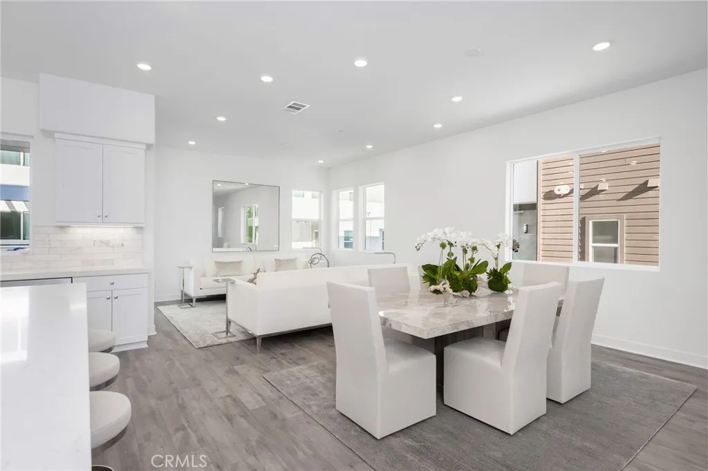 OFFERING A $20,000 CREDIT/INCENTIVE THAT CAN BE APPLIED TO PRICE REDUCTION, RATE BUY DOWN, CLOSING COSTS OR HOA FEES. Welcome to refined modern living in the master-planned FivePoint community, where luxurious homes are complemented by resort-style amenities, parks, and scenic hiking and biking trails. This sophisticated, solar-powered tri-level home features an open floor plan, soaring 10-foot ceilings, wide-plank luxury vinyl flooring, marble bathroom vanities, and a light-filled kitchen featuring quartz countertops and a dramatic oversized islanddesigned for elevated everyday living and effortless entertaining. The third-floor flex space is exceptionally largean impressive retreat that distinguishes this home. With a generous footprint, it accommodates a media room, executive office, game room, or expansive lounge within one adaptable space. Each generously sized bedroom is designed as a private sanctuary, with space for a sitting area and its own en-suite bathroom, offering comfort and privacy for family members, guests, or multi-generational living. Spa-inspired baths feature floor-to-ceiling tiled showers, polished tile flooring in all full bathrooms, and elegant marble flooring in the powder room. Thoughtful convenience includes an impressively large storage room, solar panels for energy efficiency and long-term savings, and an oversized two-car garage equipped with an electric car charging station and space for storage or a home gym. Although attached on one side, the residence enjoys a private street-level entrance and direct interior garage accessan elevated featu
